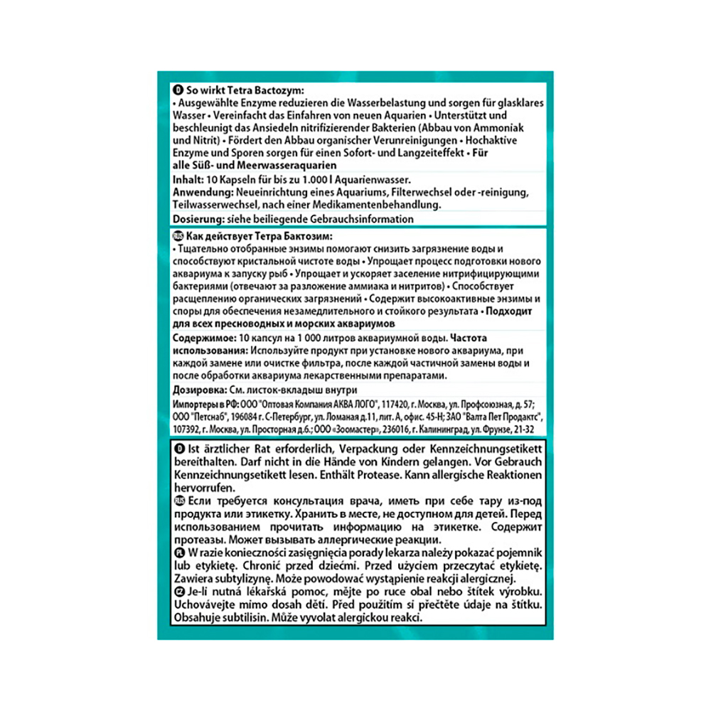 ΠΠ° Π΄Π°Π½Π½ΠΎΠΉ ΡΡΡΠ°Π½ΠΈΡΠ΅ ΡΠ°Π·ΠΌΠ΅ΡΠ΅Π½Ρ ΡΠΎΡΠΎ, ΠΎΠΏΠΈΡΠ°Π½ΠΈΠ΅ ΠΈ ΡΠΎΡΡΠ°Π², Π° ΡΠ°ΠΊΠΆΠ΅ ΠΎΡΠ·ΡΠ²Ρ ΠΎ "Tetra Aqua Bactozym ΠΠΎΠ½Π΄ΠΈΡΠΈΠΎΠ½Π΅Ρ Π½Π° 1000 Π» Ρ ΠΊΡΠ»ΡΡΡΡΠΎΠΉ Π±Π°ΠΊΡΠ΅ΡΠΈΠΉ, 10 ΡΠ°Π±.".