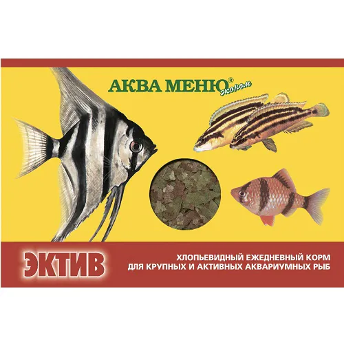 На данной странице размещены фото, описание и состав, а также отзывы о "Aquamenu Эктив корм для крупных и активных аквариумных рыб хлопья".