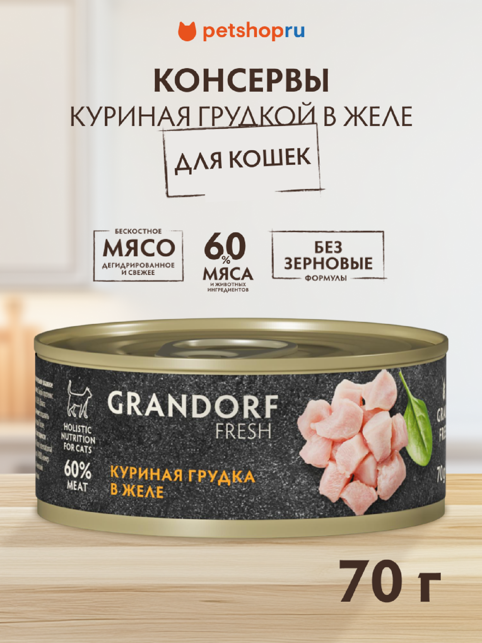 ΠšΠΎΠ½ΡΠ΅Ρ€Π²Ρ‹, ΠΏΠ°ΡƒΡ‡ΠΈ Grandorf Fresh ΠšΠΎΠ½ΡΠ΅Ρ€Π²Ρ‹ для кошСк с ΠΊΡƒΡ€ΠΈΠ½ΠΎΠΉ Π³Ρ€ΡƒΠ΄ΠΊΠΎΠΉ Π² ΠΆΠ΅Π»Π΅, 6ΡˆΡ‚ Ρ… 70Π³ (6 ΡˆΡ‚)