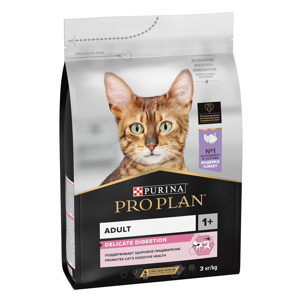 На данной странице размещены фото, описание и состав, а также отзывы о "ProPlan Delicate Digestion Сухой корм для взрослых кошек с чувствительным пищеварением, с высоким содержанием индейки, 3 кг".