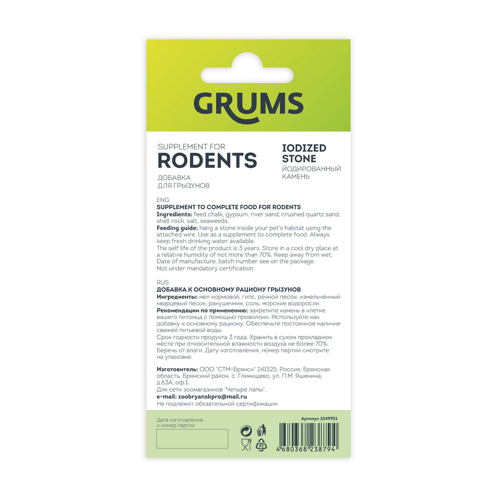 ΠΠ΅ΡΠ΅ΠΉΡΠΈ ΠΊ ΠΏΠΎΠΊΡΠΏΠΊΠ°ΠΌΠΡΠΏΠΈΡΡ "GRUMS ΠΠ°ΠΌΠ΅Π½Ρ ΠΉΠΎΠ΄ΠΈΡΠΎΠ²Π°Π½Π½ΡΠΉ Π΄Π»Ρ Π³ΡΡΠ·ΡΠ½ΠΎΠ², 14 Π³Ρ. 4680368238794" ΠΏΡΠΎΠΈΠ·Π²ΠΎΠ΄ΠΈΡΠ΅Π»Ρ "GRUMS", ΠΏΠΎ ΡΠ΅Π½Π΅ 49 β½ Π² Π·ΠΎΠΎΠΌΠ°Π³Π°Π·ΠΈΠ½Π΅ "Fraulen" Π² ΠΌΠ°Π³Π°Π·ΠΈΠ½Π΅ ΠΈΠ»ΠΈ Ρ Π΄ΠΎΡΡΠ°Π²ΠΊΠΎΠΉ Π½Π° Π΄ΠΎΠΌ Π² Π³ΠΎΡΠΎΠ΄Π΅ ΠΡΡΠΊΠΈΠ½.