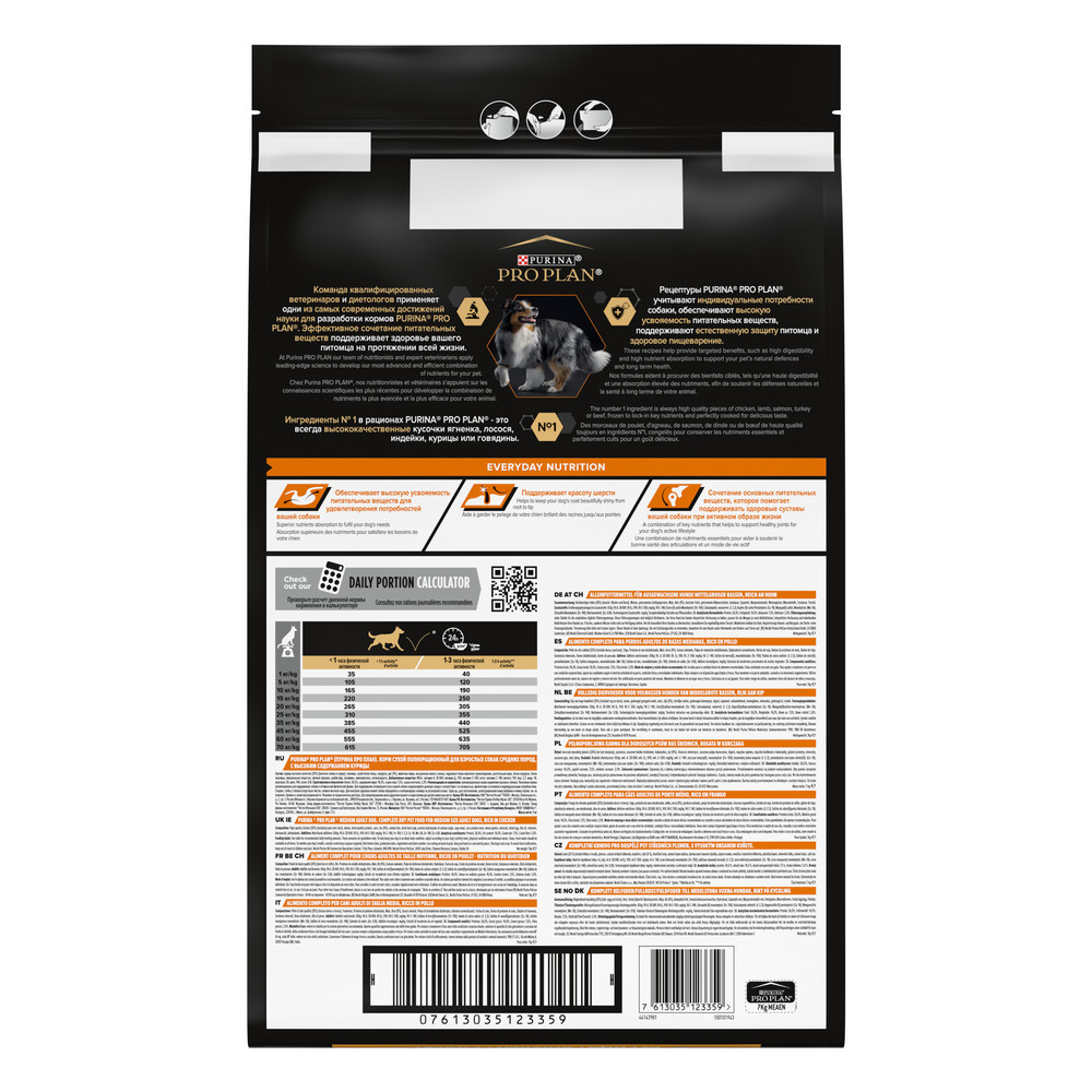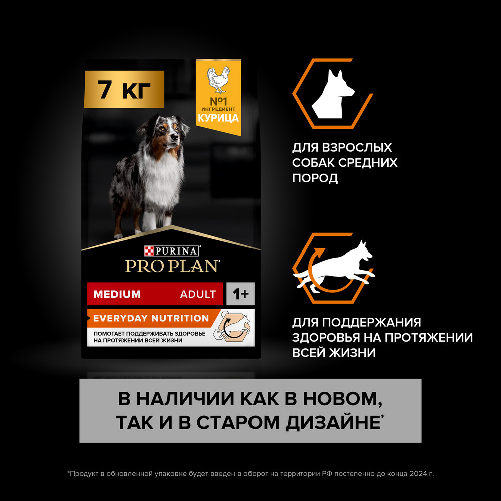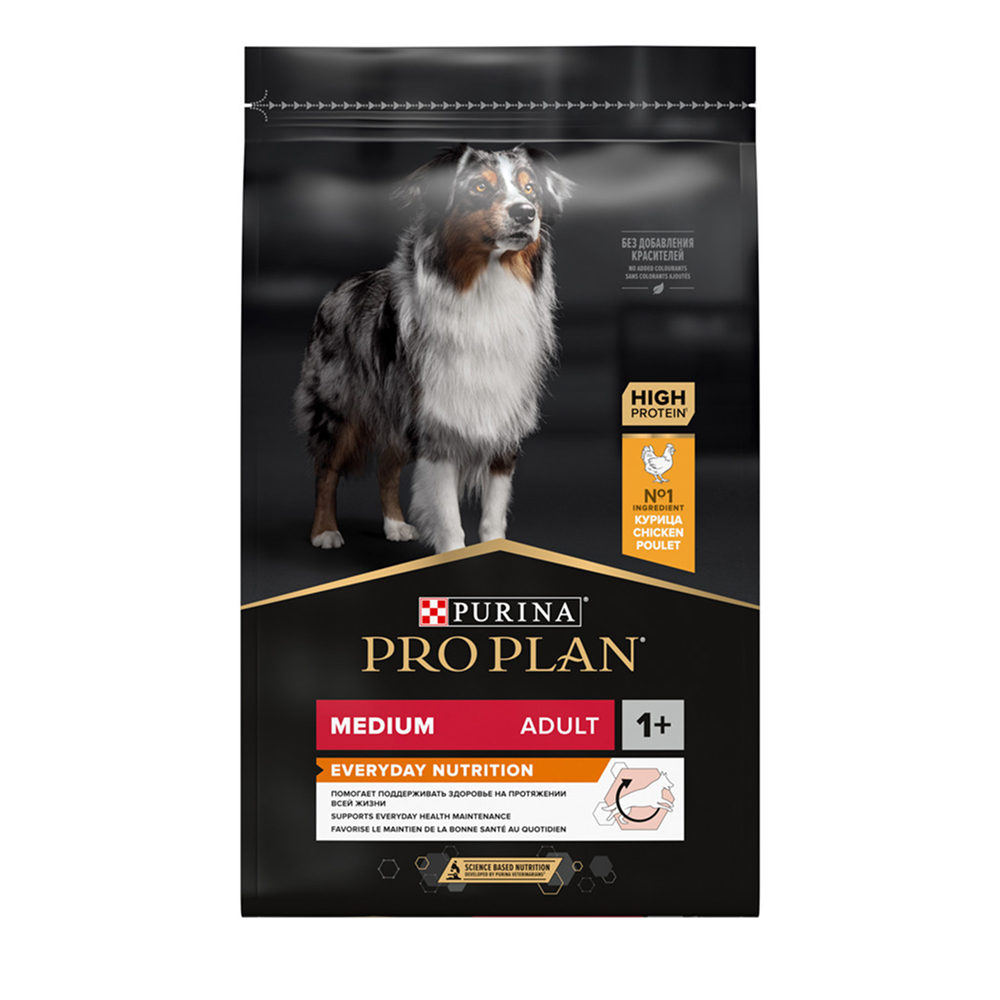 На данной странице размещены фото, описание и состав, а также отзывы о "ProPlan Everyday Nutrition Сухой корм для взрослых собак средних пород, с высоким содержанием курицы, 7 кг".