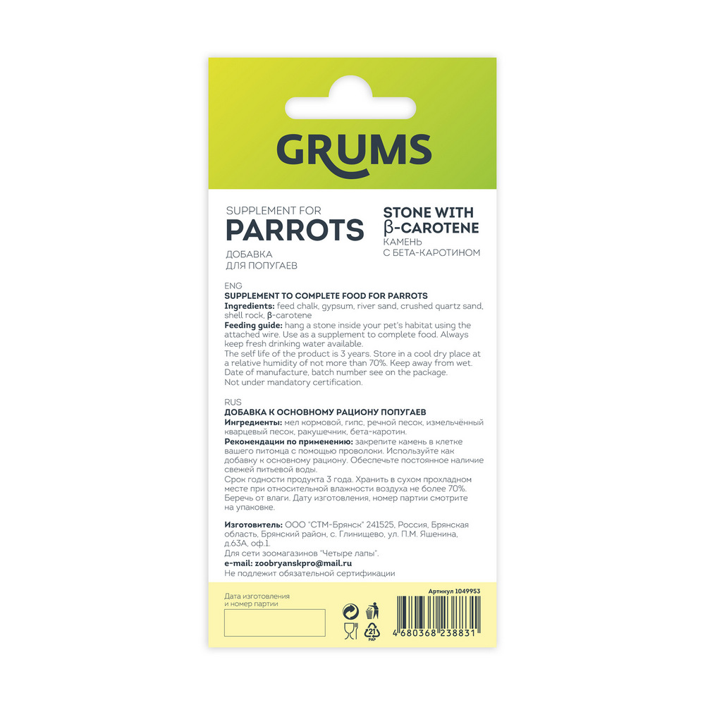 ΠΠ° Π΄Π°Π½Π½ΠΎΠΉ ΡΡΡΠ°Π½ΠΈΡΠ΅ ΡΠ°Π·ΠΌΠ΅ΡΠ΅Π½Ρ ΡΠΎΡΠΎ, ΠΎΠΏΠΈΡΠ°Π½ΠΈΠ΅ ΠΈ ΡΠΎΡΡΠ°Π², Π° ΡΠ°ΠΊΠΆΠ΅ ΠΎΡΠ·ΡΠ²Ρ ΠΎ "GRUMS ΠΠ°ΠΌΠ΅Π½Ρ Ρ Π±Π΅ΡΠ°-ΠΊΠ°ΡΠΎΡΠΈΠ½ΠΎΠΌ Π΄Π»Ρ ΠΏΠΎΠΏΡΠ³Π°Π΅Π², 14 Π³Ρ.".