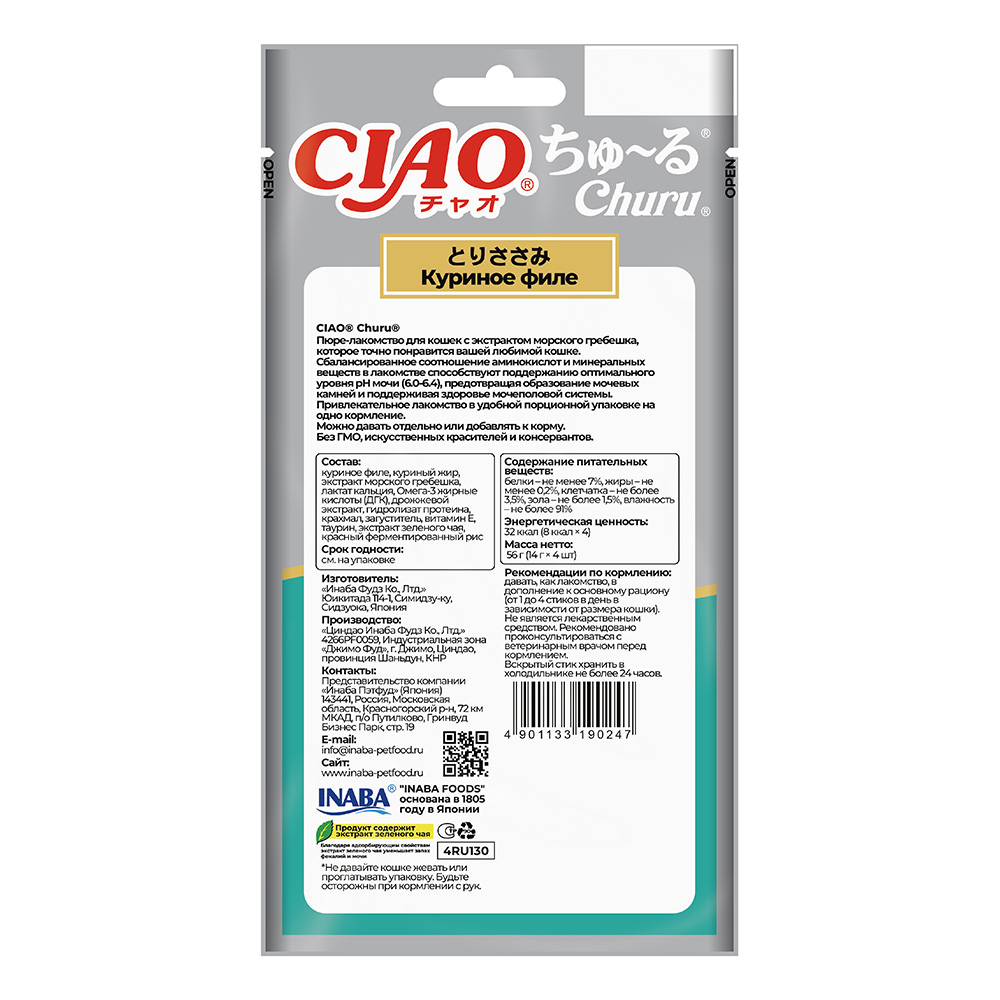 ΠΠ΅ΡΠ΅ΠΉΡΠΈ ΠΊ ΠΏΠΎΠΊΡΠΏΠΊΠ°ΠΌΠΡΠΏΠΈΡΡ "INABA CIAO ΠΠ°ΠΊΠΎΠΌΡΡΠ²ΠΎ-ΠΏΡΡΠ΅ Churu ΠΠΎΠ΄Π΄Π΅ΡΠΆΠ°Π½ΠΈΠ΅ Ph ΠΌΠΎΡΠΈ ΠΡΡΠΈΠ½ΠΎΠ΅ ΡΠΈΠ»Π΅ Π΄Π»Ρ ΠΊΠΎΡΠ΅ΠΊ, 4Ρ