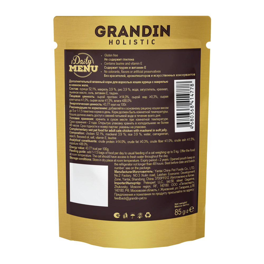 ΠΠ° Π΄Π°Π½Π½ΠΎΠΉ ΡΡΡΠ°Π½ΠΈΡΠ΅ ΡΠ°Π·ΠΌΠ΅ΡΠ΅Π½Ρ ΡΠΎΡΠΎ, ΠΎΠΏΠΈΡΠ°Π½ΠΈΠ΅ ΠΈ ΡΠΎΡΡΠ°Π², Π° ΡΠ°ΠΊΠΆΠ΅ ΠΎΡΠ·ΡΠ²Ρ ΠΎ "Grandin ΠΠ»Π°ΠΆΠ½ΡΠΉ ΠΊΠΎΡΠΌ (ΠΏΠ°ΡΡ) Π΄Π»Ρ ΠΊΠΎΡΠ΅ΠΊ, ΠΊΡΡΠΈΡΠ° Ρ ΠΌΠ°ΠΊΡΠ΅Π»ΡΡ Π² Π½Π΅ΠΆΠ½ΠΎΠΌ ΠΆΠ΅Π»Π΅, 85 Π³Ρ.".