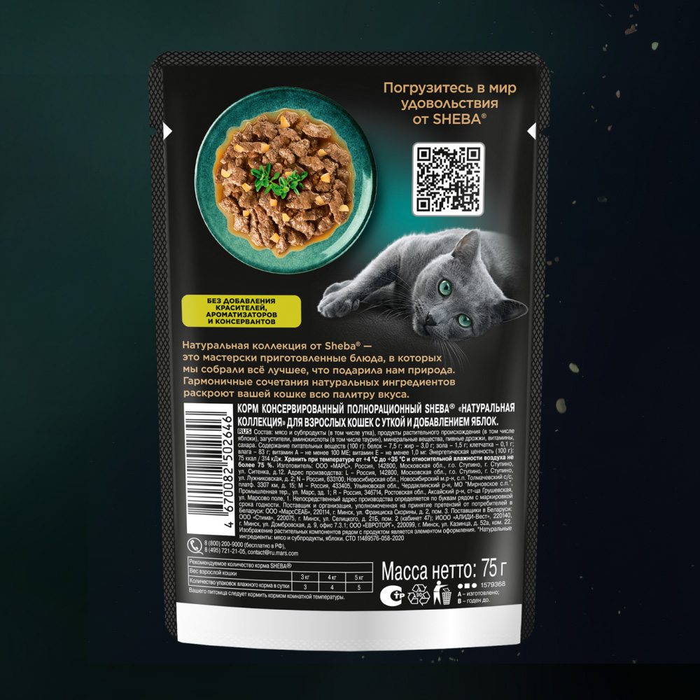 ΠΠ° Π΄Π°Π½Π½ΠΎΠΉ ΡΡΡΠ°Π½ΠΈΡΠ΅ ΡΠ°Π·ΠΌΠ΅ΡΠ΅Π½Ρ ΡΠΎΡΠΎ, ΠΎΠΏΠΈΡΠ°Π½ΠΈΠ΅ ΠΈ ΡΠΎΡΡΠ°Π², Π° ΡΠ°ΠΊΠΆΠ΅ ΠΎΡΠ·ΡΠ²Ρ ΠΎ "Sheba ΠΠ»Π°ΠΆΠ½ΡΠΉ ΠΊΠΎΡΠΌ (ΠΏΠ°ΡΡ) Π΄Π»Ρ ΠΊΠΎΡΠ΅ΠΊ ΠΠ°ΡΡΡΠ°Π»ΡΠ½Π°Ρ ΠΊΠΎΠ»Π»Π΅ΠΊΡΠΈΡ, ΡΡΠΊΠ° Ρ ΡΠ±Π»ΠΎΠΊΠ°ΠΌΠΈ Π²ΡΠΎΡΡΠ΅ 75 Π³Ρ.".