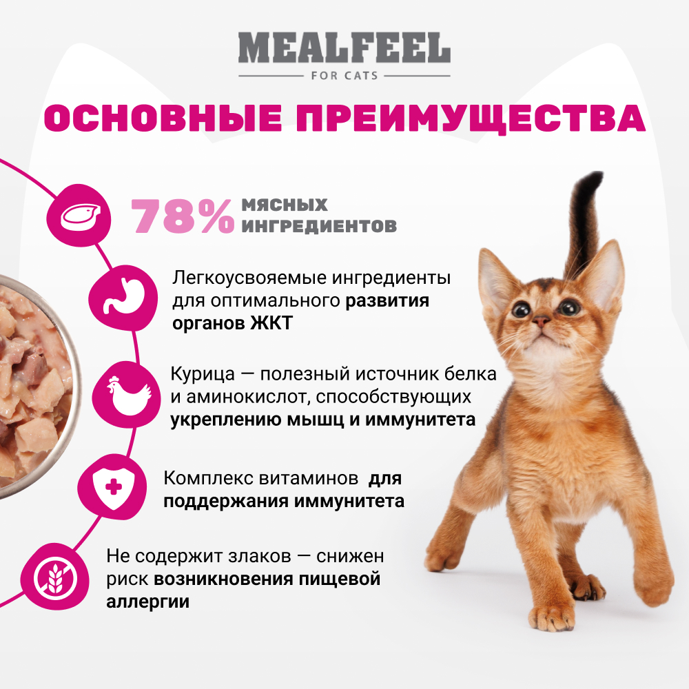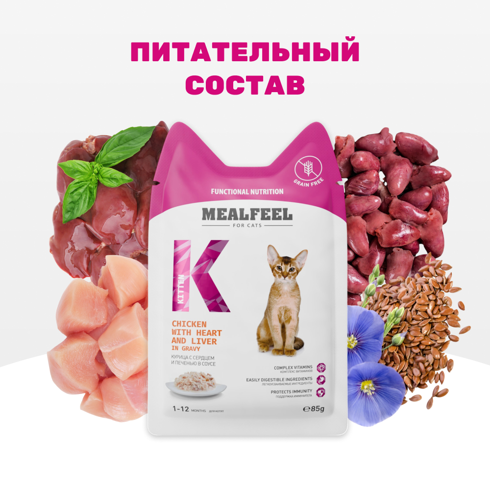 ΠΠ° Π΄Π°Π½Π½ΠΎΠΉ ΡΡΡΠ°Π½ΠΈΡΠ΅ ΡΠ°Π·ΠΌΠ΅ΡΠ΅Π½Ρ ΡΠΎΡΠΎ, ΠΎΠΏΠΈΡΠ°Π½ΠΈΠ΅ ΠΈ ΡΠΎΡΡΠ°Π², Π° ΡΠ°ΠΊΠΆΠ΅ ΠΎΡΠ·ΡΠ²Ρ ΠΎ "Mealfeel Kitten ΠΠ»Π°ΠΆΠ½ΡΠΉ ΠΊΠΎΡΠΌ (ΠΏΠ°ΡΡ) Π΄Π»Ρ ΠΊΠΎΡΡΡ, ΠΊΡΡΠΈΡΠ° Ρ ΡΠ΅ΡΠ΄ΡΠ΅ΠΌ ΠΈ ΠΏΠ΅ΡΠ΅Π½ΡΡ Π² ΡΠΎΡΡΠ΅, 85 Π³Ρ.".