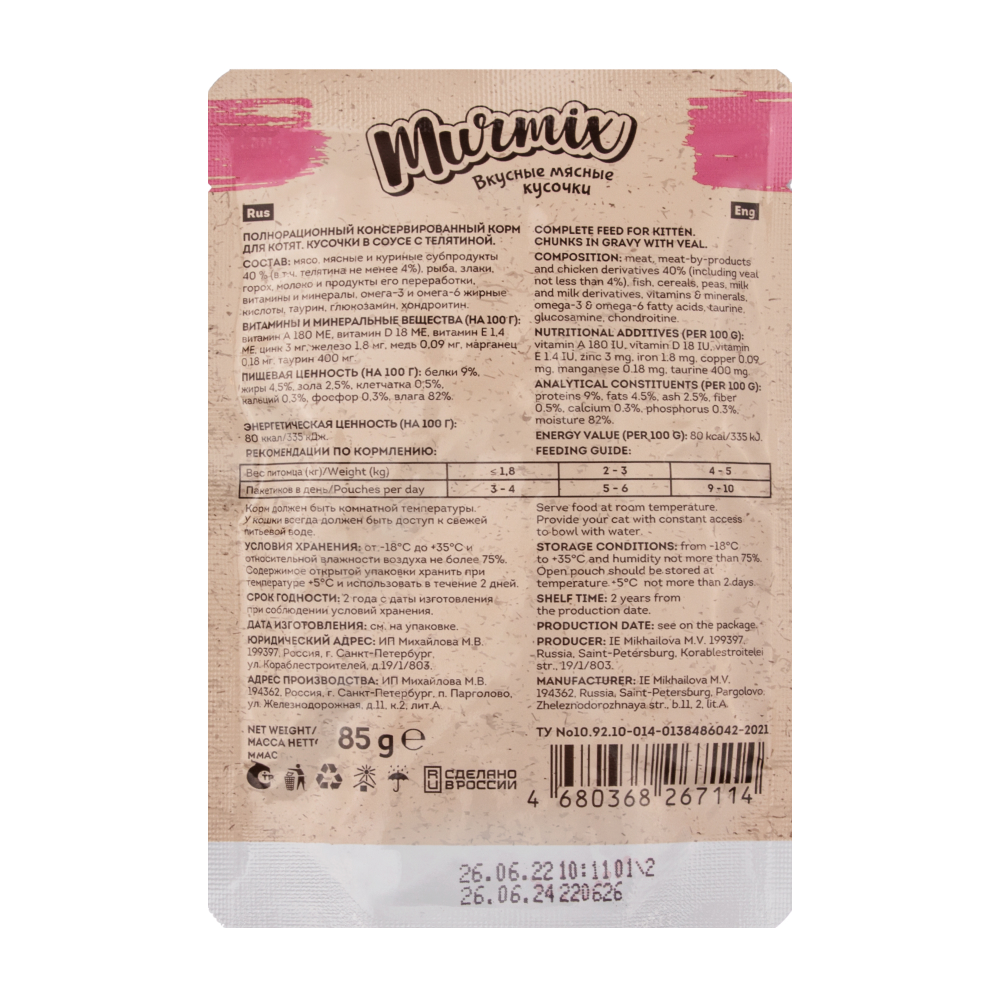 ΠΠ° Π΄Π°Π½Π½ΠΎΠΉ ΡΡΡΠ°Π½ΠΈΡΠ΅ ΡΠ°Π·ΠΌΠ΅ΡΠ΅Π½Ρ ΡΠΎΡΠΎ, ΠΎΠΏΠΈΡΠ°Π½ΠΈΠ΅ ΠΈ ΡΠΎΡΡΠ°Π², Π° ΡΠ°ΠΊΠΆΠ΅ ΠΎΡΠ·ΡΠ²Ρ ΠΎ "Murmix ΠΠ»Π°ΠΆΠ½ΡΠΉ ΠΊΠΎΡΠΌ (ΠΏΠ°ΡΡ) Π΄Π»Ρ ΠΊΠΎΡΡΡ, ΠΊΡΡΠΎΡΠΊΠΈ Ρ ΡΠ΅Π»ΡΡΠΈΠ½ΠΎΠΉ Π² ΡΠΎΡΡΠ΅, 85 Π³Ρ.".