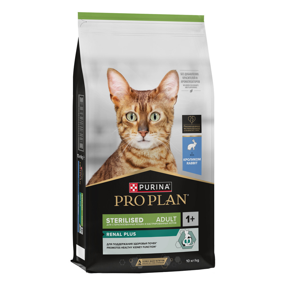 На данной странице размещены фото, описание и состав, а также отзывы о "ProPlan Sterilised Adult Renal Plus Сухой корм для поддержания здоровья почек у стерилизованных кошек старше 1 года, с кроликом, 10 кг".