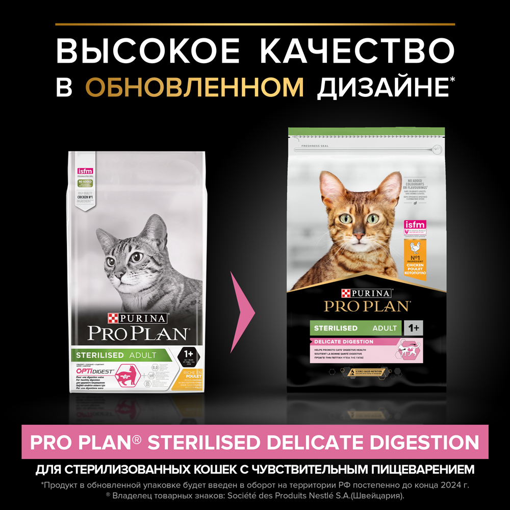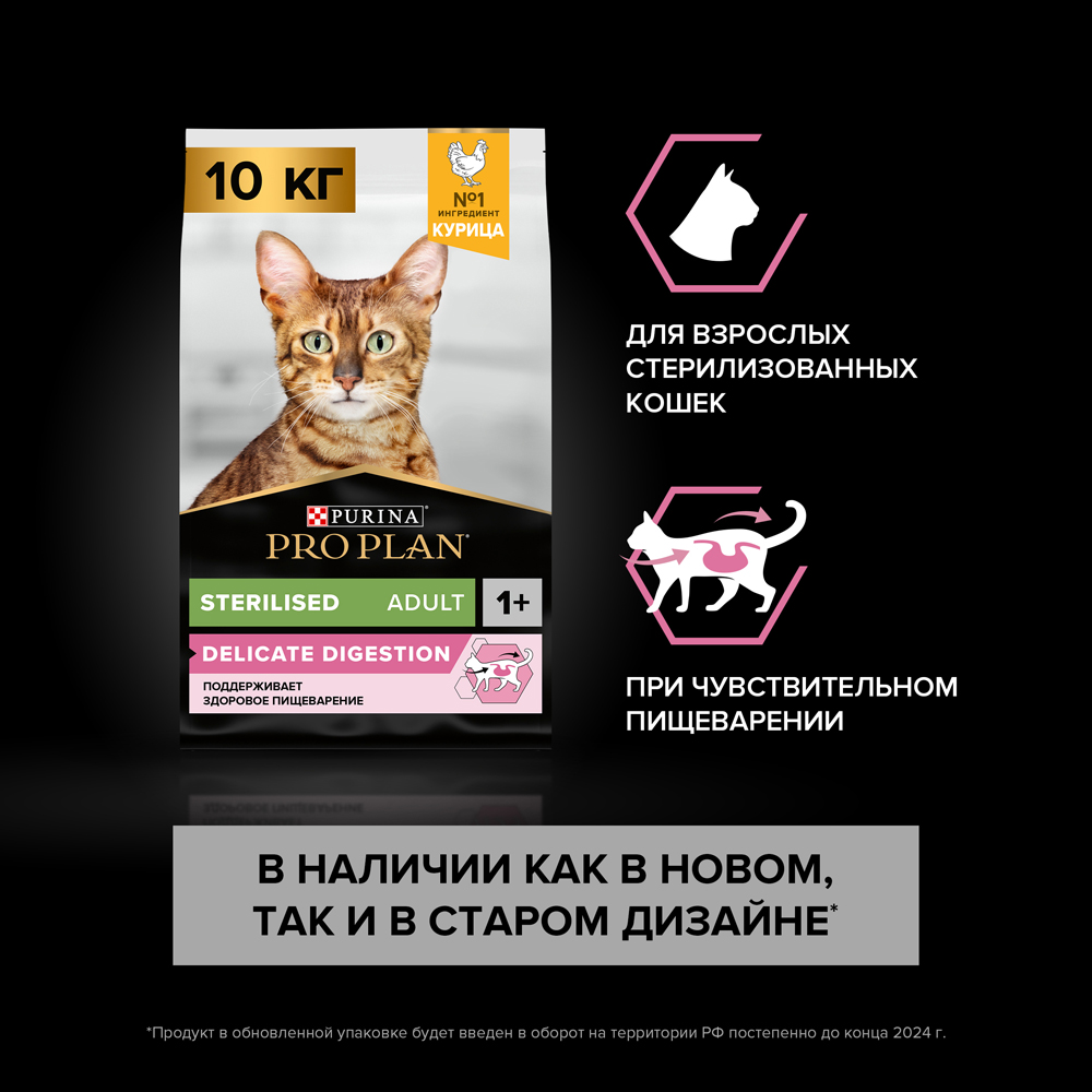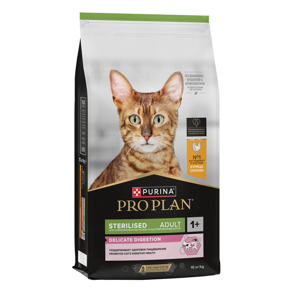 На данной странице размещены фото, описание и состав, а также отзывы о "ProPlan Sterilised Delicate Digestion Сухой корм для взрослых стерилизованных кошек и кастрированных котов с чувствительным пищеварением, с курицей, 10 кг".