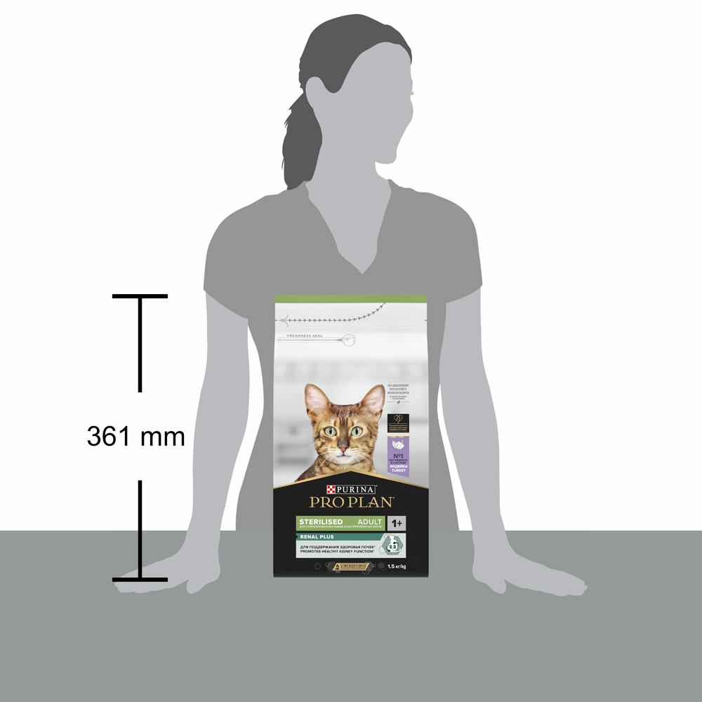 На данной странице размещены фото, описание и состав, а также отзывы о "ProPlan Sterilised Renal Plus Сухой корм для поддержания здоровья почек у стерилизованных кошек, с высоким содержанием индейки, 1,5 кг".