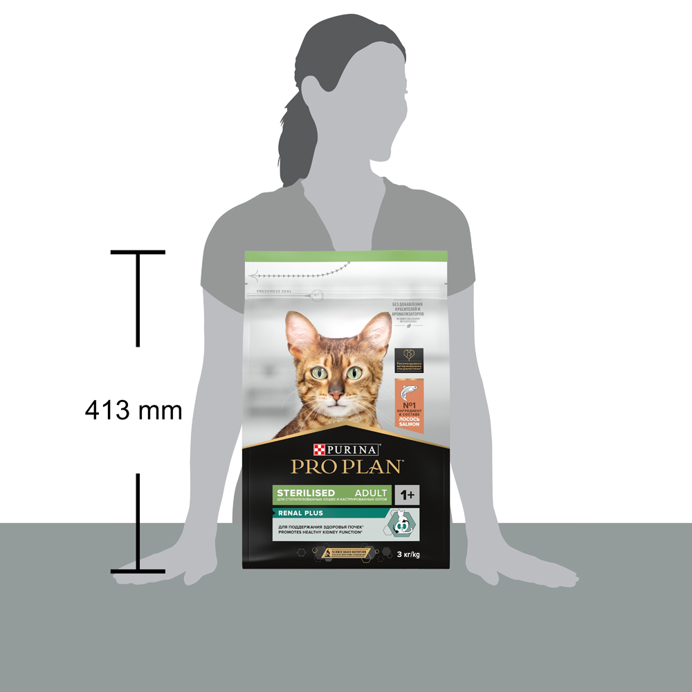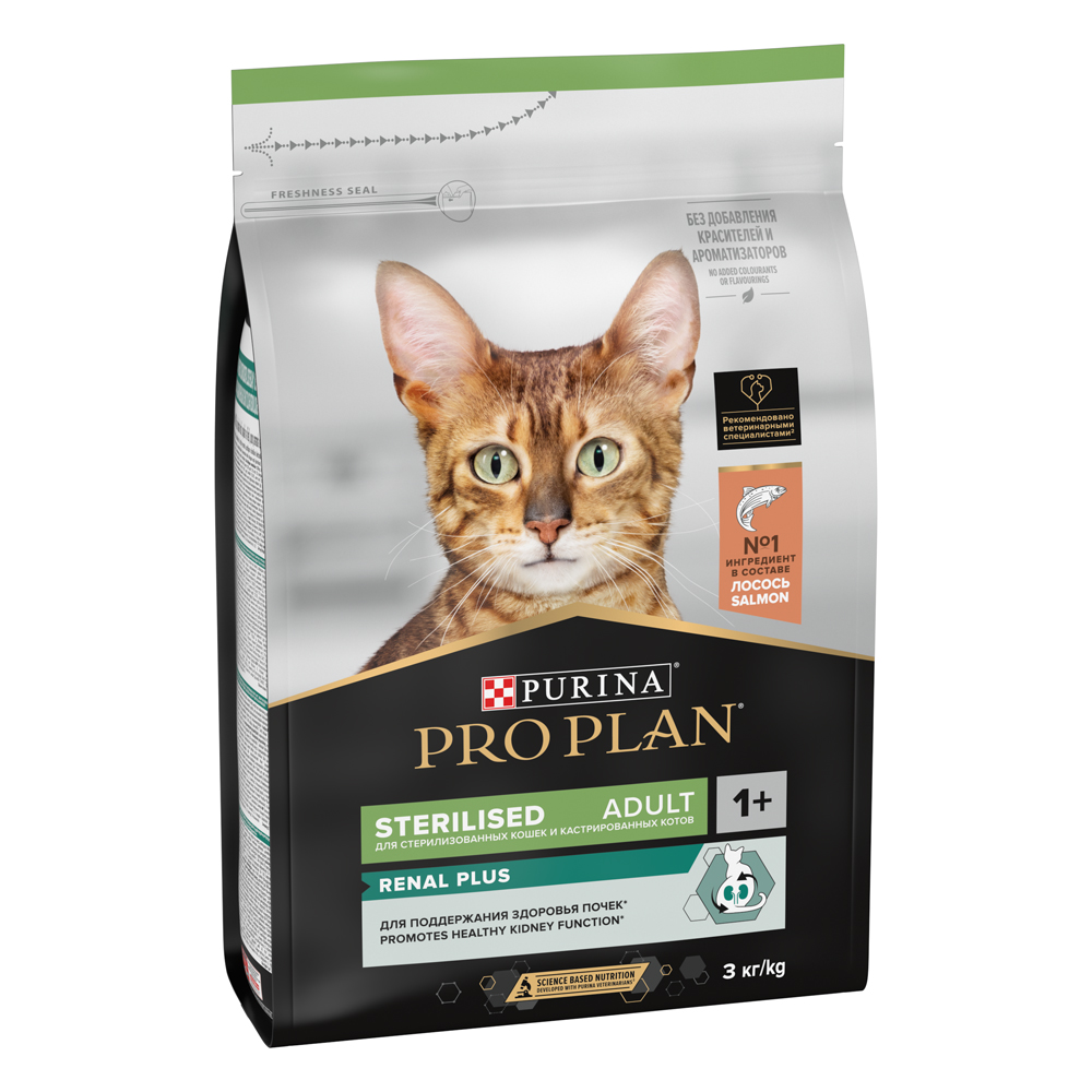 На данной странице размещены фото, описание и состав, а также отзывы о "ProPlan Sterilised Renal Plus Сухой корм для поддержания здоровья почек у стерилизованных кошек, с высоким содержанием лосося, 3 кг".