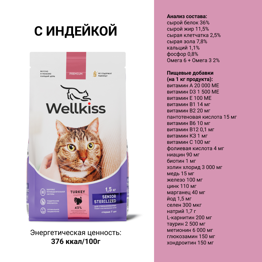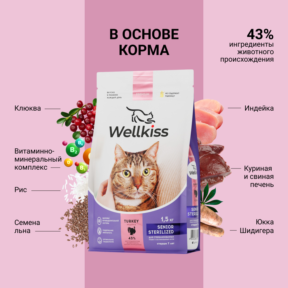 ΠΠ° Π΄Π°Π½Π½ΠΎΠΉ ΡΡΡΠ°Π½ΠΈΡΠ΅ ΡΠ°Π·ΠΌΠ΅ΡΠ΅Π½Ρ ΡΠΎΡΠΎ, ΠΎΠΏΠΈΡΠ°Π½ΠΈΠ΅ ΠΈ ΡΠΎΡΡΠ°Π², Π° ΡΠ°ΠΊΠΆΠ΅ ΠΎΡΠ·ΡΠ²Ρ ΠΎ "Wellkiss Senior Sterilized Π‘ΡΡ