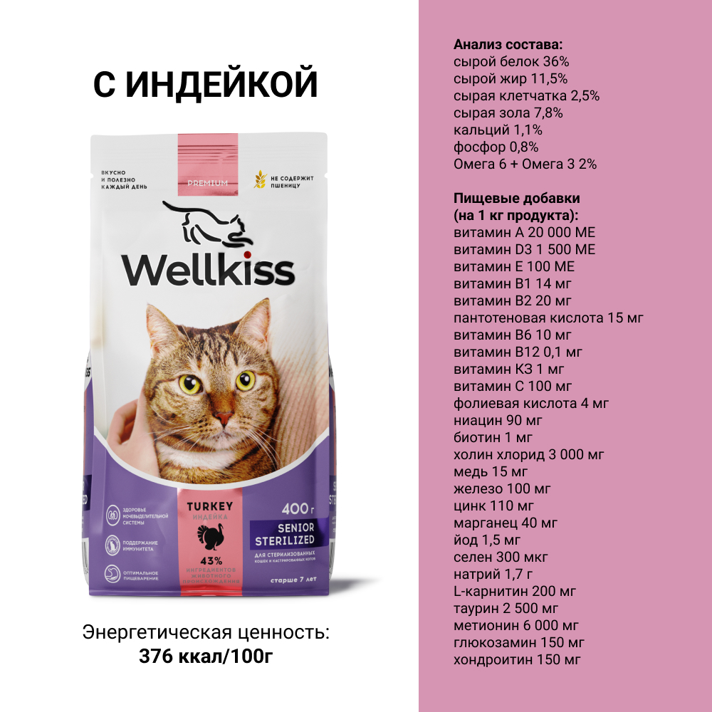 ΠΠ° Π΄Π°Π½Π½ΠΎΠΉ ΡΡΡΠ°Π½ΠΈΡΠ΅ ΡΠ°Π·ΠΌΠ΅ΡΠ΅Π½Ρ ΡΠΎΡΠΎ, ΠΎΠΏΠΈΡΠ°Π½ΠΈΠ΅ ΠΈ ΡΠΎΡΡΠ°Π², Π° ΡΠ°ΠΊΠΆΠ΅ ΠΎΡΠ·ΡΠ²Ρ ΠΎ "Wellkiss Senior Sterilized Π‘ΡΡ