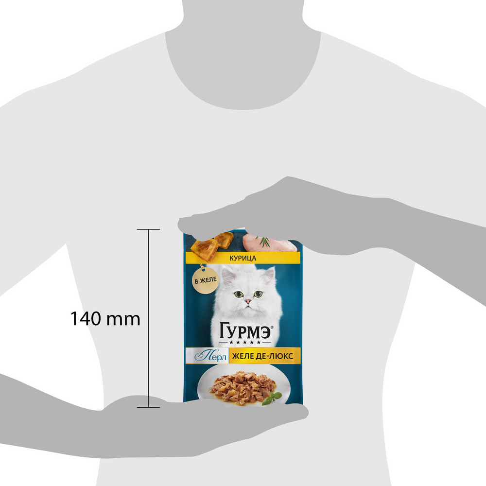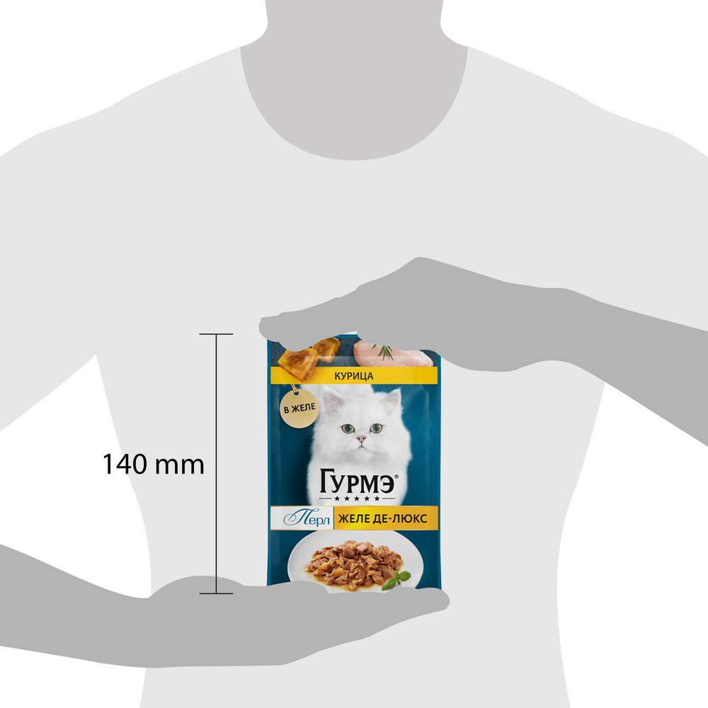 На данной странице размещены фото, описание и состав, а также отзывы о "Gourmet Влажный корм (пауч) для взрослых кошек Желе Де-Люкс, с курицей в желе, 75 гр.".