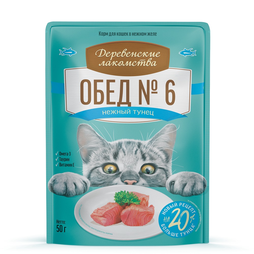 На данной странице размещены фото, описание и состав, а также отзывы о "Корм для кошек ДЕРЕВЕНСКИЕ ЛАКОМСТВА Нежный тунец пауч 50г".