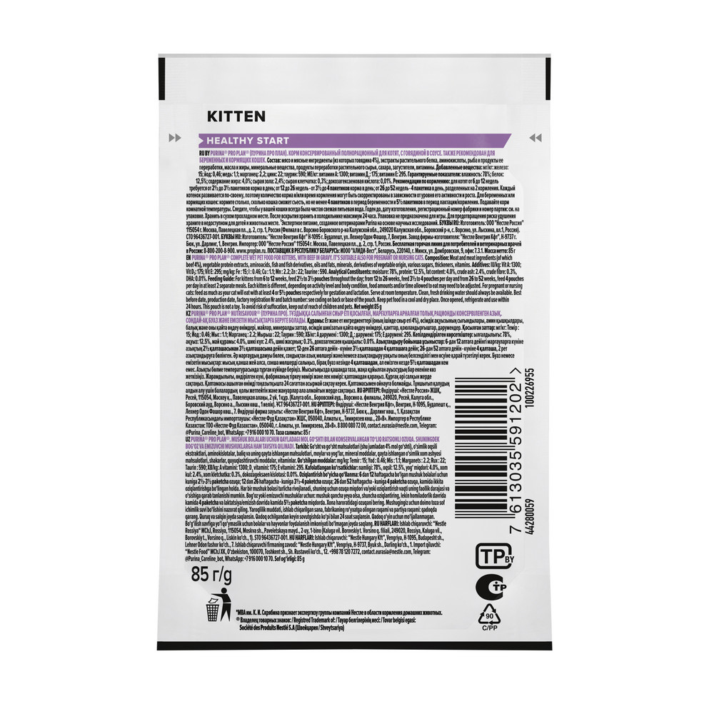 На данной странице размещены фото, описание и состав, а также отзывы о "ProPlan HEALTHY START Влажный корм (пауч) для котят, с говядиной в соусе, 85 гр.".