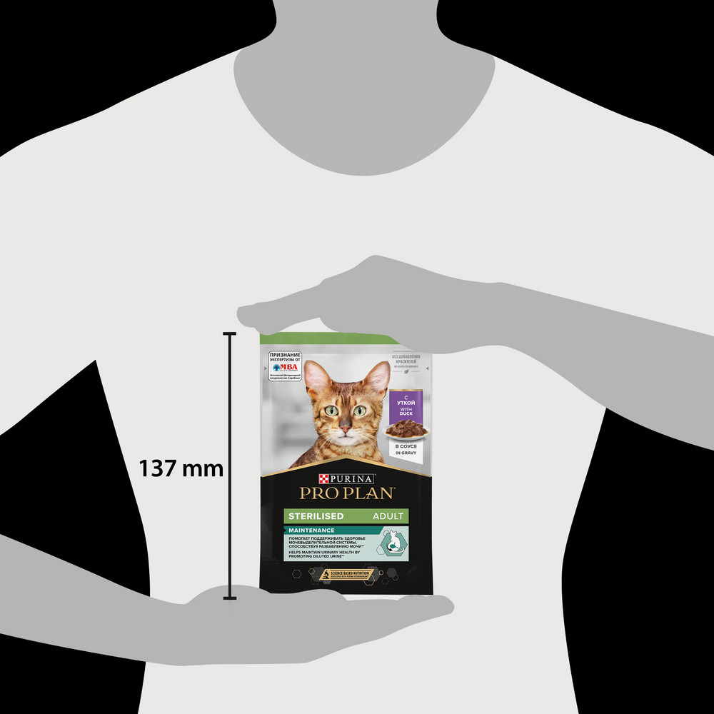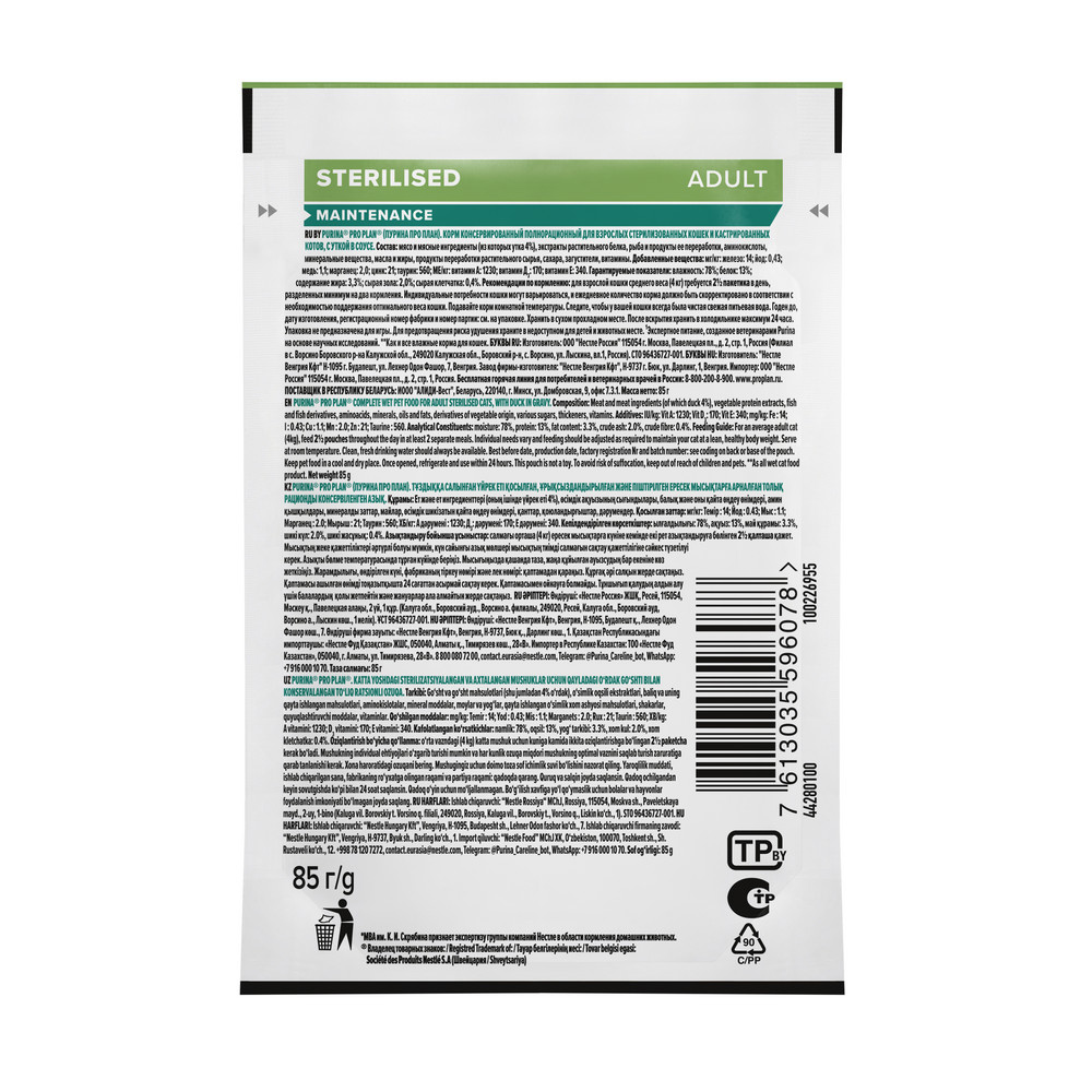 На данной странице размещены фото, описание и состав, а также отзывы о "ProPlan Sterilised Maintenance Влажный корм (пауч) для взрослых стерилизованных кошек и кастрированных котов, с уткой в соусе, 85 гр.".