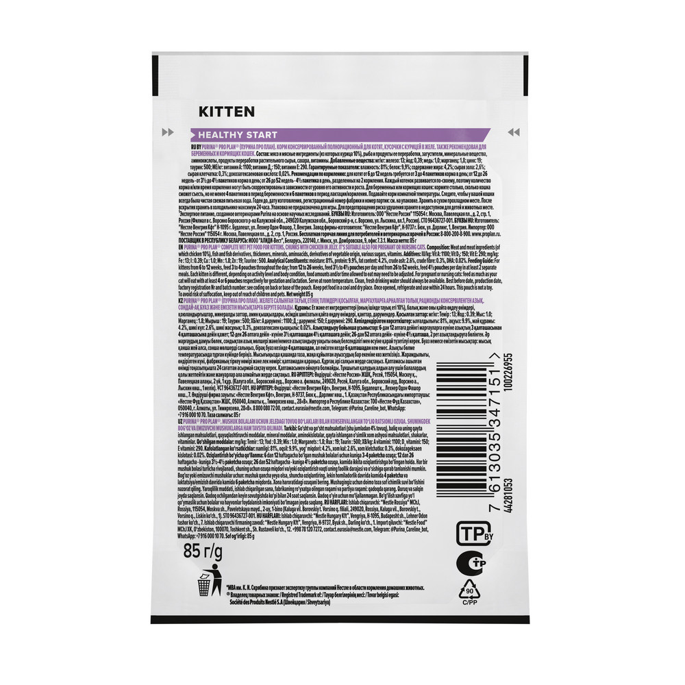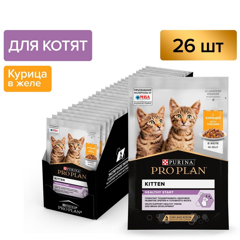 На данной странице размещены фото, описание и состав, а также отзывы о "ProPlan Healthy Start Влажный корм (пауч) для котят, с курицей в желе, 85 гр.".