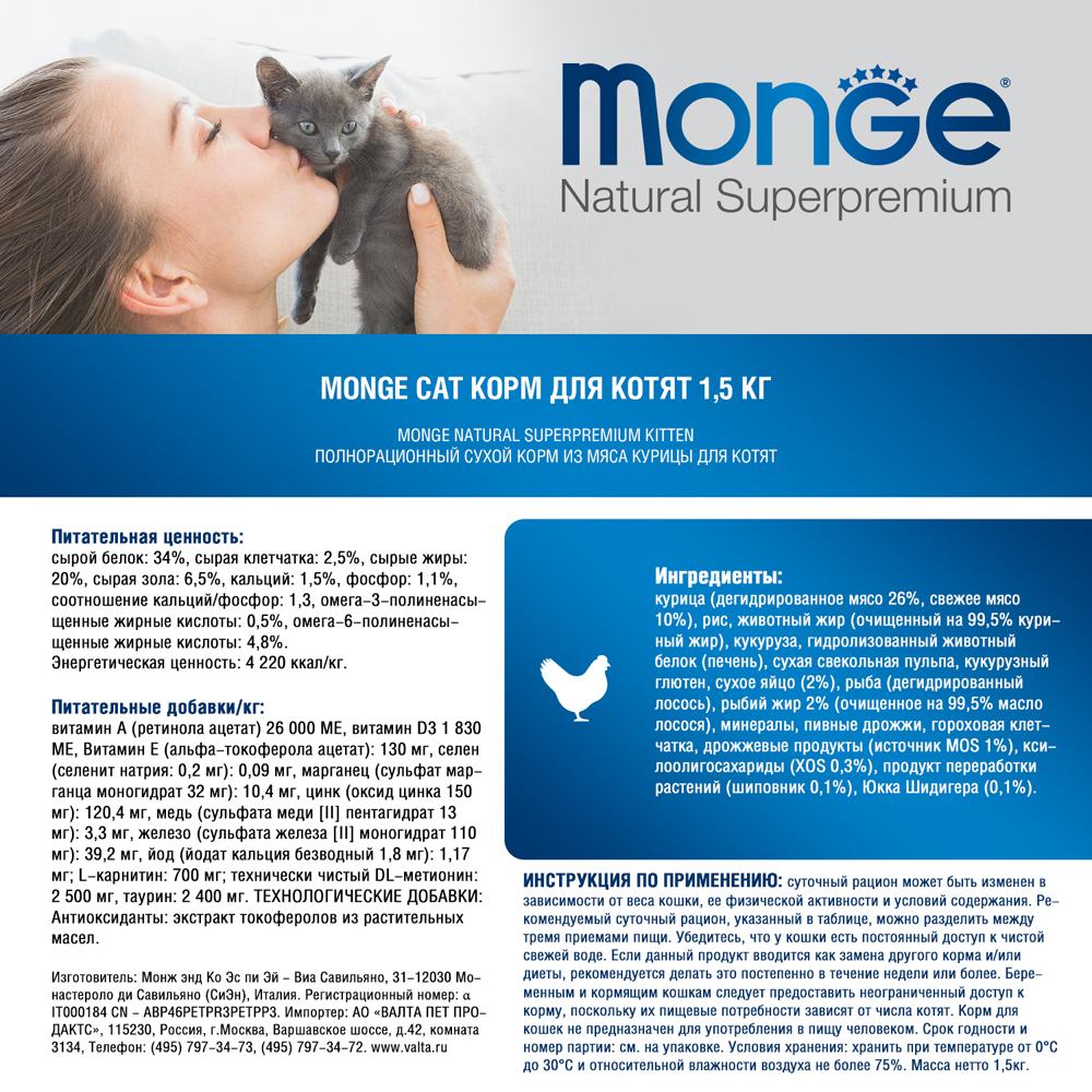 ΠΠ° Π΄Π°Π½Π½ΠΎΠΉ ΡΡΡΠ°Π½ΠΈΡΠ΅ ΡΠ°Π·ΠΌΠ΅ΡΠ΅Π½Ρ ΡΠΎΡΠΎ, ΠΎΠΏΠΈΡΠ°Π½ΠΈΠ΅ ΠΈ ΡΠΎΡΡΠ°Π², Π° ΡΠ°ΠΊΠΆΠ΅ ΠΎΡΠ·ΡΠ²Ρ ΠΎ "Monge Kitten ΠΊΠΎΡΠΌ Π΄Π»Ρ Π·Π΄ΠΎΡΠΎΠ²ΠΎΠ³ΠΎ ΡΠΎΡΡΠ° ΠΊΠΎΡΡΡ Π² Π²ΠΎΠ·ΡΠ°ΡΡΠ΅ ΠΎΡ 1 Π΄ΠΎ 12 ΠΌΠ΅ΡΡΡΠ΅Π², Π±Π΅ΡΠ΅ΠΌΠ΅Π½Π½ΡΡ