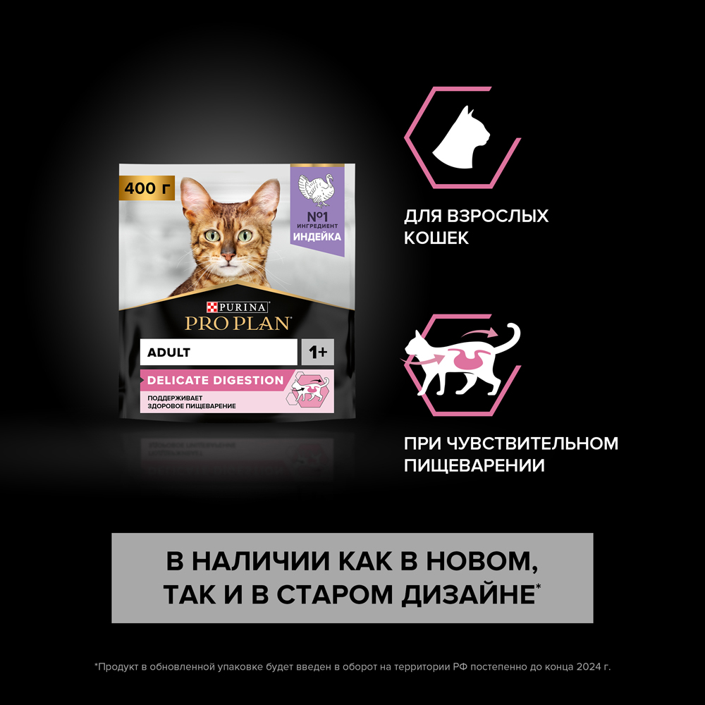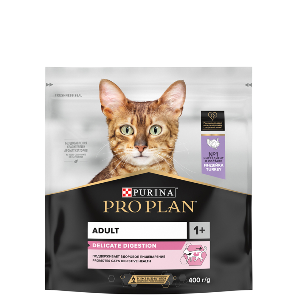 На данной странице размещены фото, описание и состав, а также отзывы о "ProPlan Delicate Digestion Сухой корм для взрослых кошек с чувствительным пищеварением, с высоким содержанием индейки, 400 гр.".
