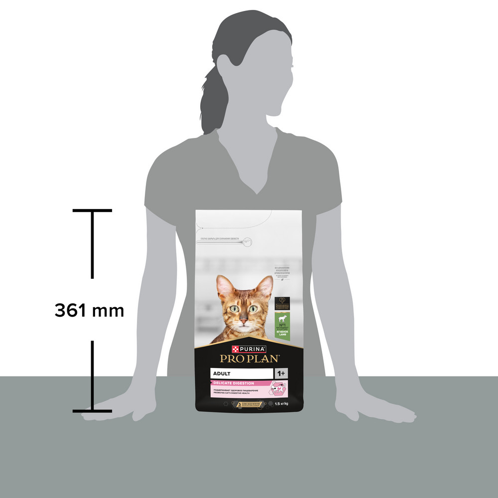 На данной странице размещены фото, описание и состав, а также отзывы о "ProPlan Delicate сухой корм для взрослых кошек при чувствительном пищеварении с ягненком, 1,5 кг".
