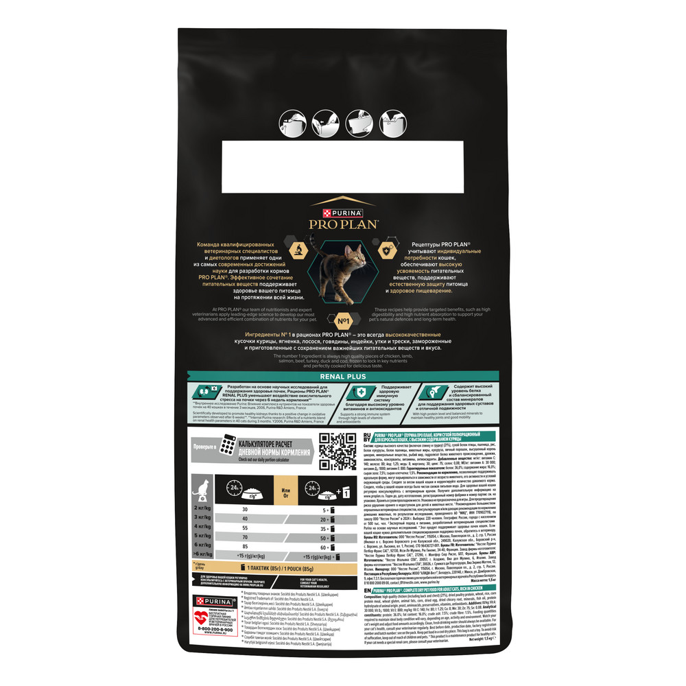На данной странице размещены фото, описание и состав, а также отзывы о "ProPlan Renal Plus Сухой корм для поддержания здоровья почек у взрослых кошек, с высоким содержанием курицы, 1,5 кг".