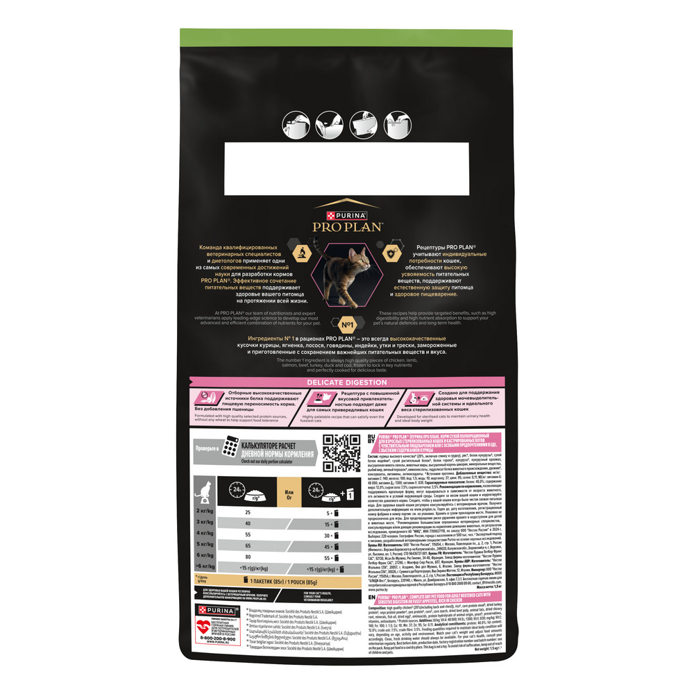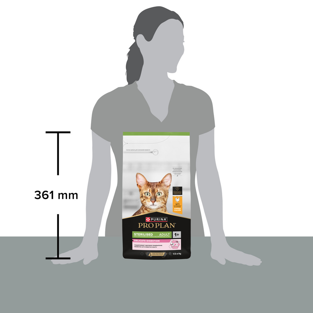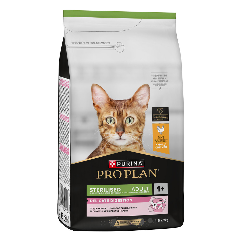 На данной странице размещены фото, описание и состав, а также отзывы о "ProPlan Sterilised Delicate Digestion Сухой корм для взрослых стерилизованных кошек и кастрированных котов с чувствительным пищеварением, с курицей, 1,5 кг".