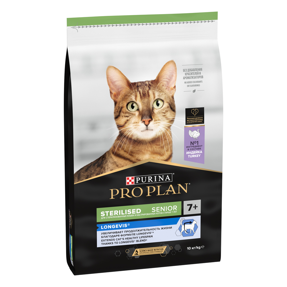 На данной странице размещены фото, описание и состав, а также отзывы о "ProPlan Sterilised Longevis Сухой корм для пожилых стерилизованных кошек и кастрированных котов старше 7 лет, с индейкой, 10 кг".