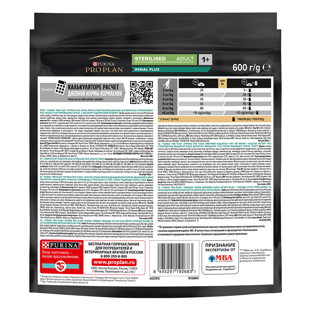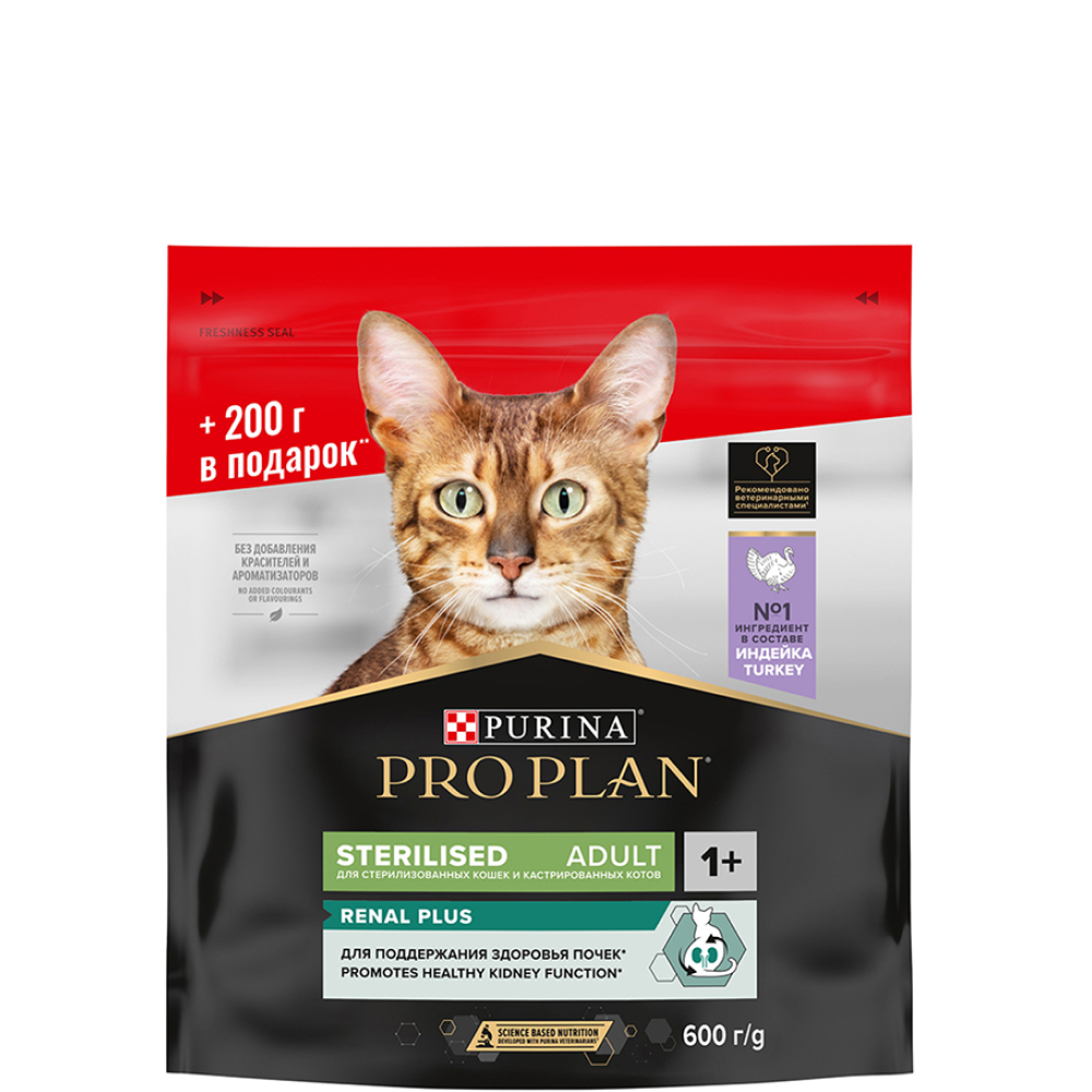 На данной странице размещены фото, описание и состав, а также отзывы о "ProPlan Sterilised Renal Plus Сухой корм для стерилизованных кошек, с индейкой, 600 гр.".