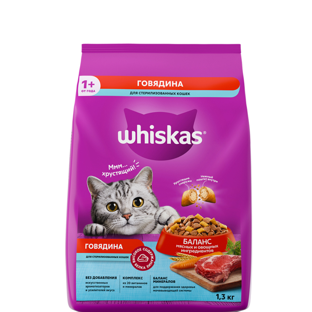 ΠΊΠΎΡΠ΅ΠΊ ΠΈ ΠΊΠΎΡΠΎΠ² ΡΡΠ°ΡΡΠ΅ 1 Π³ΠΎΠ΄Π°, Ρ Π³ΠΎΠ²ΡΠ΄ΠΈΠ½ΠΎΠΉ, 1,3 ΠΊΠ³ 4670082504398" ΠΏΡΠΎΠΈΠ·Π²ΠΎΠ΄ΠΈΡΠ΅Π»Ρ "Whiskas", ΠΏΠΎ ΡΠ΅Π½Π΅ 639 β½ Π² Π·ΠΎΠΎΠΌΠ°Π³Π°Π·ΠΈΠ½Π΅ "Fraulen" Π² ΠΌΠ°Π³Π°Π·ΠΈΠ½Π΅ ΠΈΠ»ΠΈ Ρ Π΄ΠΎΡΡΠ°Π²ΠΊΠΎΠΉ Π½Π° Π΄ΠΎΠΌ Π² Π³ΠΎΡΠΎΠ΄Π΅ ΠΠΎΡΠΊΠ²Π°.