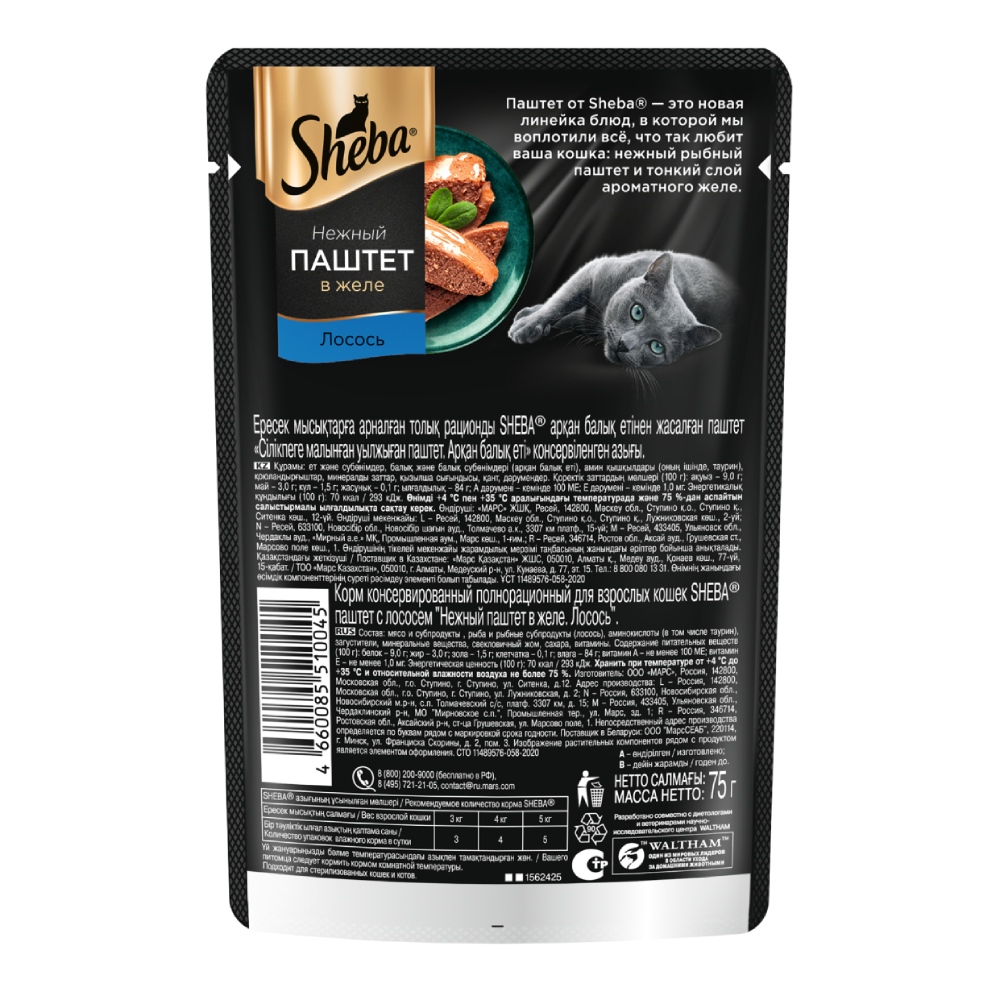 ΠΠ° Π΄Π°Π½Π½ΠΎΠΉ ΡΡΡΠ°Π½ΠΈΡΠ΅ ΡΠ°Π·ΠΌΠ΅ΡΠ΅Π½Ρ ΡΠΎΡΠΎ, ΠΎΠΏΠΈΡΠ°Π½ΠΈΠ΅ ΠΈ ΡΠΎΡΡΠ°Π², Π° ΡΠ°ΠΊΠΆΠ΅ ΠΎΡΠ·ΡΠ²Ρ ΠΎ "Sheba ΠΠ»Π°ΠΆΠ½ΡΠΉ ΠΊΠΎΡΠΌ (ΠΏΠ°ΡΡ) Π΄Π»Ρ ΠΊΠΎΡΠ΅ΠΊ, Ρ ΠΏΠ°ΡΡΠ΅ΡΠΎΠΌ ΠΈΠ· Π»ΠΎΡΠΎΡΡ Π² ΠΆΠ΅Π»Π΅, 75 Π³Ρ.".
