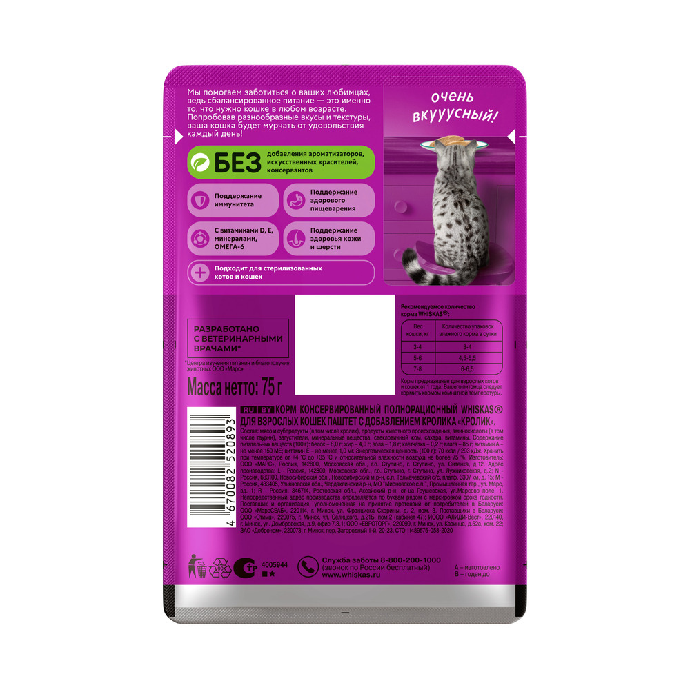 ΠΠ΅ΡΠ΅ΠΉΡΠΈ ΠΊ ΠΏΠΎΠΊΡΠΏΠΊΠ°ΠΌΠΡΠΏΠΈΡΡ "Whiskas ΠΠ»Π°ΠΆΠ½ΡΠΉ ΠΊΠΎΡΠΌ (ΠΏΠ°ΡΡ) Π΄Π»Ρ ΠΊΠΎΡΠ΅ΠΊ, ΠΏΠ°ΡΡΠ΅Ρ Ρ ΠΊΡΠΎΠ»ΠΈΠΊΠΎΠΌ, 75 Π³Ρ. 4670082520893" ΠΏΡΠΎΠΈΠ·Π²ΠΎΠ΄ΠΈΡΠ΅Π»Ρ "Whiskas", ΠΏΠΎ ΡΠ΅Π½Π΅ 35 β½ Π² Π·ΠΎΠΎΠΌΠ°Π³Π°Π·ΠΈΠ½Π΅ "Fraulen" Π² ΠΌΠ°Π³Π°Π·ΠΈΠ½Π΅ ΠΈΠ»ΠΈ Ρ Π΄ΠΎΡΡΠ°Π²ΠΊΠΎΠΉ Π½Π° Π΄ΠΎΠΌ Π² Π³ΠΎΡΠΎΠ΄Π΅ ΠΠΎΡΠΊΠ²Π°.