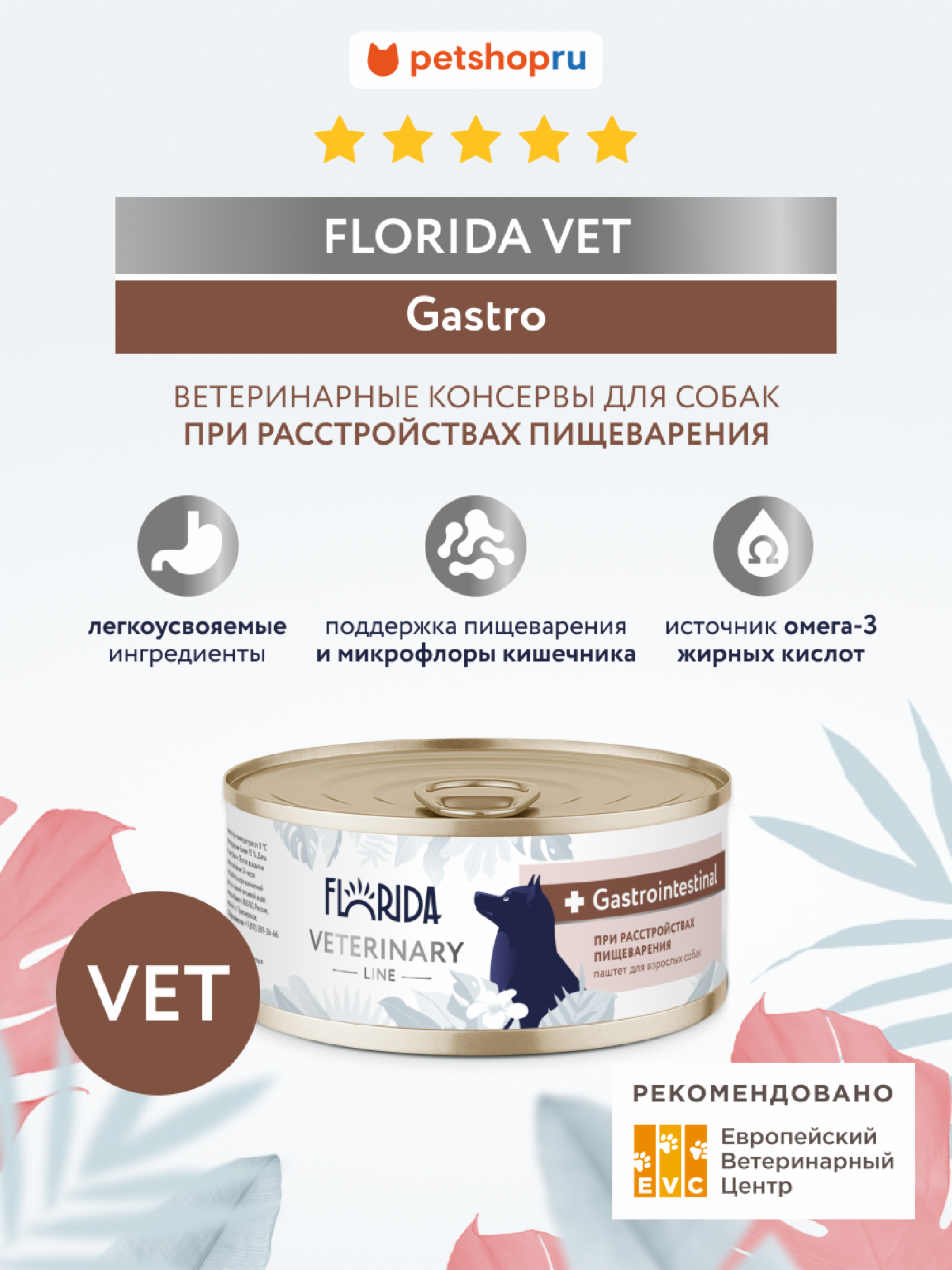 ΡΠΎΡΡΠΎΡΠ½ΠΈΠΉ;- Π»Π΅Π³ΠΊΠΎΡΡΠ²ΠΎΡΠ΅ΠΌΡΠ΅ ΠΈΠ½Π³ΡΠ΅Π΄ΠΈΠ΅Π½ΡΡ ΠΈ ΡΡΠ½ΠΊΡΠΈΠΎΠ½Π°Π»ΡΠ½ΡΠ΅ Π΄ΠΎΠ±Π°Π²ΠΊΠΈ;- ΠΊΠΎΠ½ΡΡΠΎΠ»Ρ ΠΊΠ°ΡΠ΅ΡΡΠ²Π° ΠΈ ΠΏΠΎΠ΄ΡΠ²Π΅ΡΠΆΠ΄ΡΠ½Π½Π°Ρ ΡΡΡΠ΅ΠΊΡΠΈΠ²Π½ΠΎΡΡΡ;- ΠΎΠΏΡΠΈΠΌΠ°Π»ΡΠ½ΡΠ΅ ΡΠ΅ΡΠ΅ΠΏΡΡΡΡ Π΄Π»Ρ ΠΏΠΎΠ΄Π΄Π΅ΡΠΆΠΊΠΈ ΠΏΠΈΡΠ΅Π²Π°ΡΠ΅Π½ΠΈΡ, ΠΏΠ΅ΡΠ΅Π½ΠΈ, ΠΏΠΎΡΠ΅ΠΊ, ΠΊΠΎΠΆΠΈ, Π²Π΅ΡΠ° ΠΈ ΠΎΠ±ΡΠ΅Π³ΠΎ ΡΠΎΠ½ΡΡΠ° ΠΏΠΈΡΠΎΠΌΡΠ΅Π².ΠΠΈΠ΅ΡΡ Florida Veterinary Line Gastrointestinal - Π΄ΠΈΠ΅ΡΠΈΡΠ΅ΡΠΊΠΈΠΉ Π²Π»Π°ΠΆΠ½ΡΠΉ ΠΊΠΎΡΠΌ, ΡΠ°Π·ΡΠ°Π±ΠΎΡΠ°Π½Π½ΡΠΉ Π΄Π»Ρ ΡΠΎΠ±Π°ΠΊ Ρ Π½Π°ΡΡΡΠ΅Π½ΠΈΡΠΌΠΈ ΠΏΠΈΡΠ΅Π²Π°ΡΠ΅Π½ΠΈΡ ΠΈ Π²ΡΠ°ΡΡΠ²Π°Π½ΠΈΡ Π² ΠΊΠΈΡΠ΅ΡΠ½ΠΈΠΊΠ΅.Π€ΠΎΡΠΌΡΠ»Π° ΠΎΠ±Π΅ΡΠΏΠ΅ΡΠΈΠ²Π°Π΅Ρ ΡΠ°Π΄ΡΡΠ΅Π΅ Π²ΠΎΠ·Π΄Π΅ΠΉΡΡΠ²ΠΈΠ΅ Π½Π° ΠΆΠ΅Π»ΡΠ΄ΠΎΡΠ½ΠΎ-ΠΊΠΈΡΠ΅ΡΠ½ΡΠΉ ΡΡΠ°ΠΊΡ, ΡΠΏΠΎΡΠΎΠ±ΡΡΠ²ΡΠ΅Ρ Π²ΠΎΡΡΡΠ°Π½ΠΎΠ²Π»Π΅Π½ΠΈΡ ΠΌΠΈΠΊΡΠΎΡΠ»ΠΎΡΡ ΠΈ ΡΠ»ΡΡΡΠ°Π΅Ρ ΡΡΠ²ΠΎΠ΅Π½ΠΈΠ΅ ΠΏΠΈΡΠ°ΡΠ΅Π»ΡΠ½ΡΡ