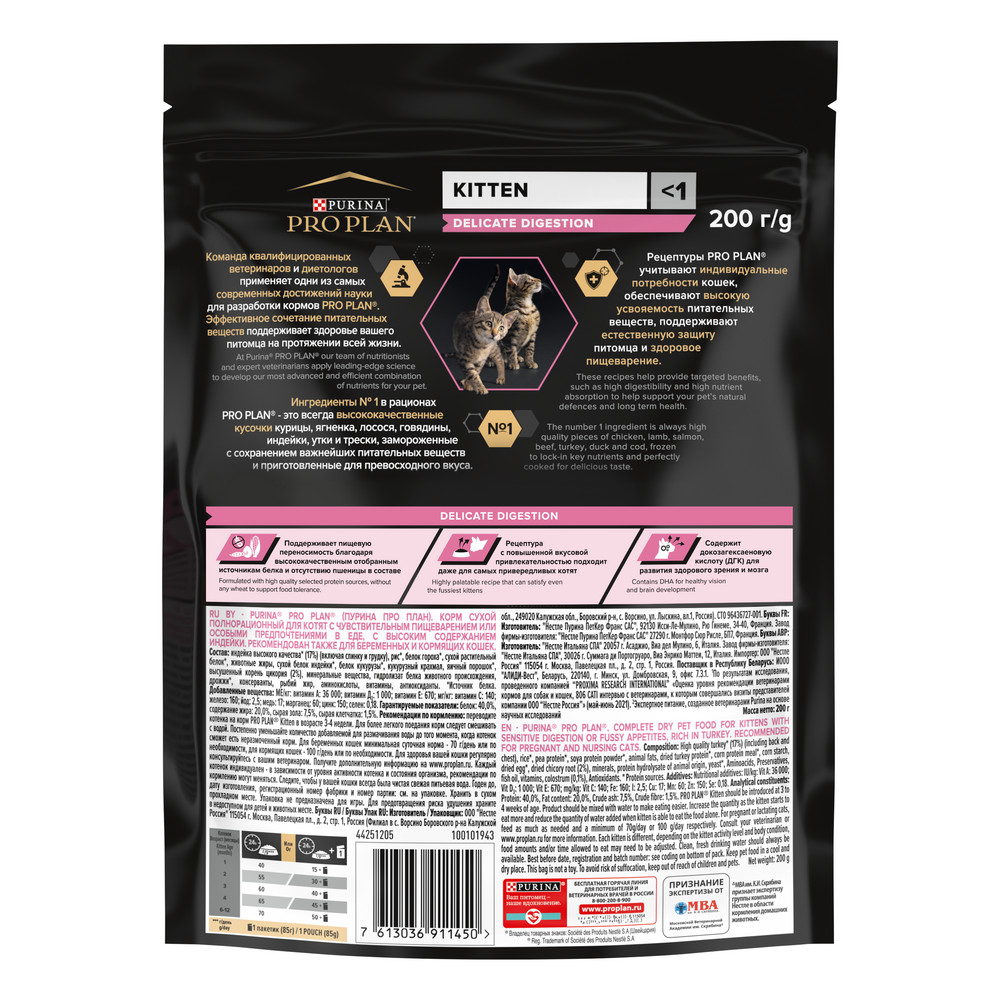 На данной странице размещены фото, описание и состав, а также отзывы о "ProPlan Kitten Delicate Digestion Сухой корм для котят с чувствительным пищеварением, с индейкой, 200 гр.".