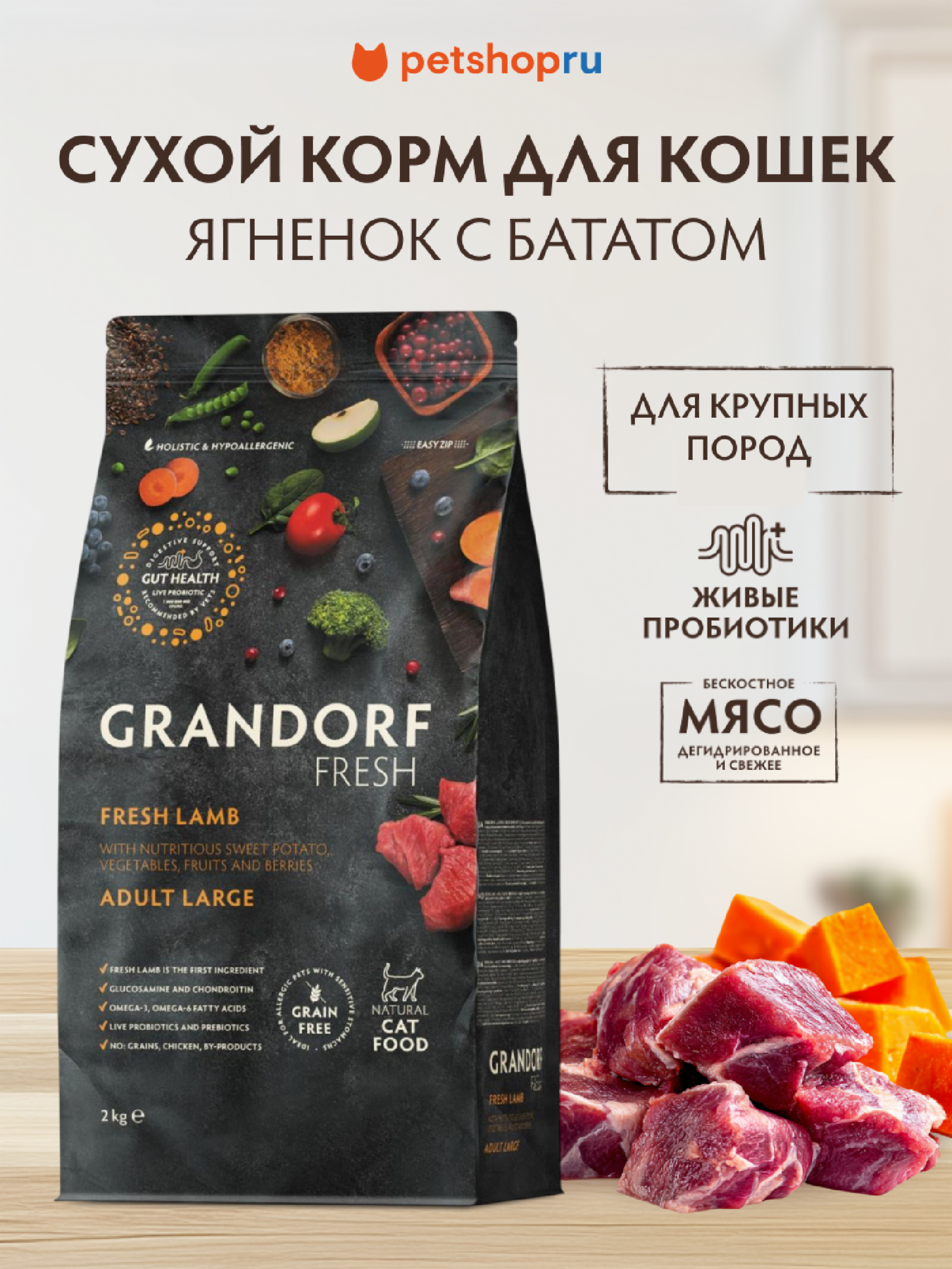 Благодаря беззерновому и безглютеновому составу корма Grandorf FRESH легко усваиваются и отлично подходят для животных с чувствительным пищеварением или пищевой аллергией.