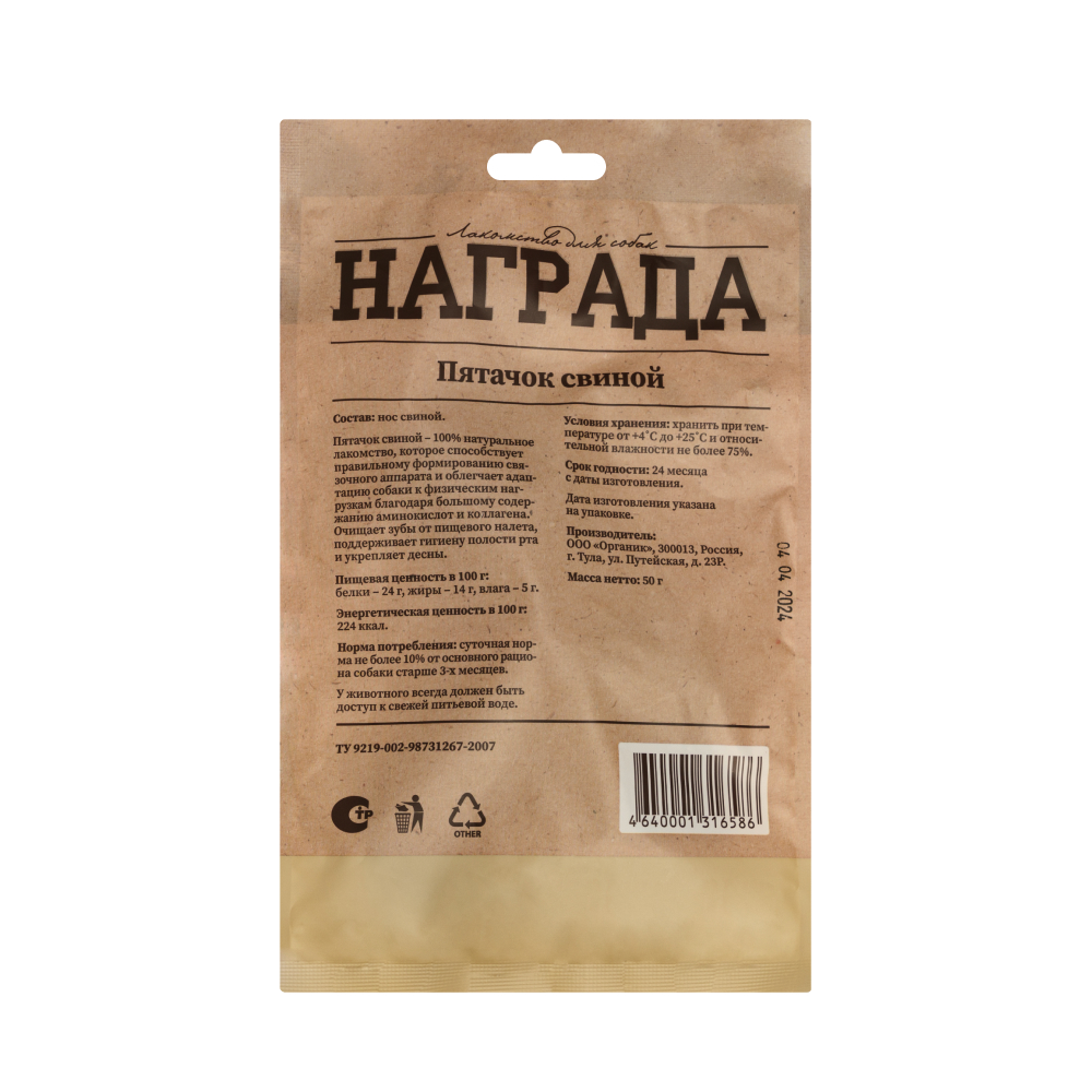 ΠΠ° Π΄Π°Π½Π½ΠΎΠΉ ΡΡΡΠ°Π½ΠΈΡΠ΅ ΡΠ°Π·ΠΌΠ΅ΡΠ΅Π½Ρ ΡΠΎΡΠΎ, ΠΎΠΏΠΈΡΠ°Π½ΠΈΠ΅ ΠΈ ΡΠΎΡΡΠ°Π², Π° ΡΠ°ΠΊΠΆΠ΅ ΠΎΡΠ·ΡΠ²Ρ ΠΎ "ΠΠ°Π³ΡΠ°Π΄Π° ΠΠ°ΠΊΠΎΠΌΡΡΠ²ΠΎ ΠΡΡΠ°ΡΠΎΠΊ ΡΠ²ΠΈΠ½ΠΎΠΉ Π΄Π»Ρ ΡΠΎΠ±Π°ΠΊ, 3 ΡΡ., 50 Π³Ρ.".