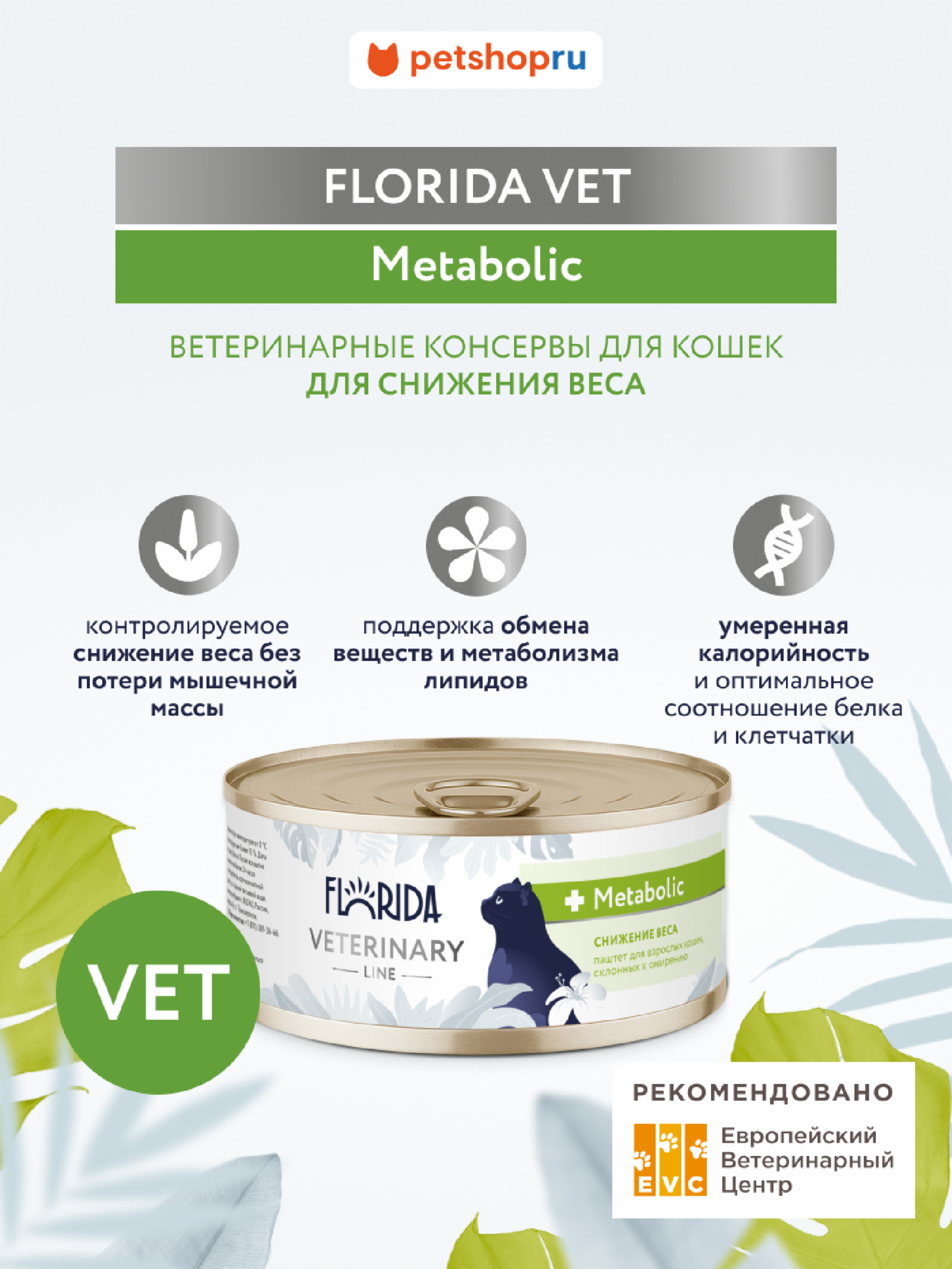 Π₯олистики Florida vet (Π²Π΅Ρ‚. консСрвы) Metabolic, Π²Π΅Ρ‚Π΅Ρ€ΠΈΠ½Π°Ρ€Π½Ρ‹ΠΉ Π²Π»Π°ΠΆΠ½Ρ‹ΠΉ диСтичСский ΠΊΠΎΡ€ΠΌ для взрослых кошСк для сниТСния вСса ΠΈ ΠΏΡ€ΠΈ склонности ΠΊ ΠΎΠΆΠΈΡ€Π΅Π½ΠΈΡŽ, консСрвы, Π½Π°Π±ΠΎΡ€ 12 ΡˆΡ‚ (12 ΡˆΡ‚)