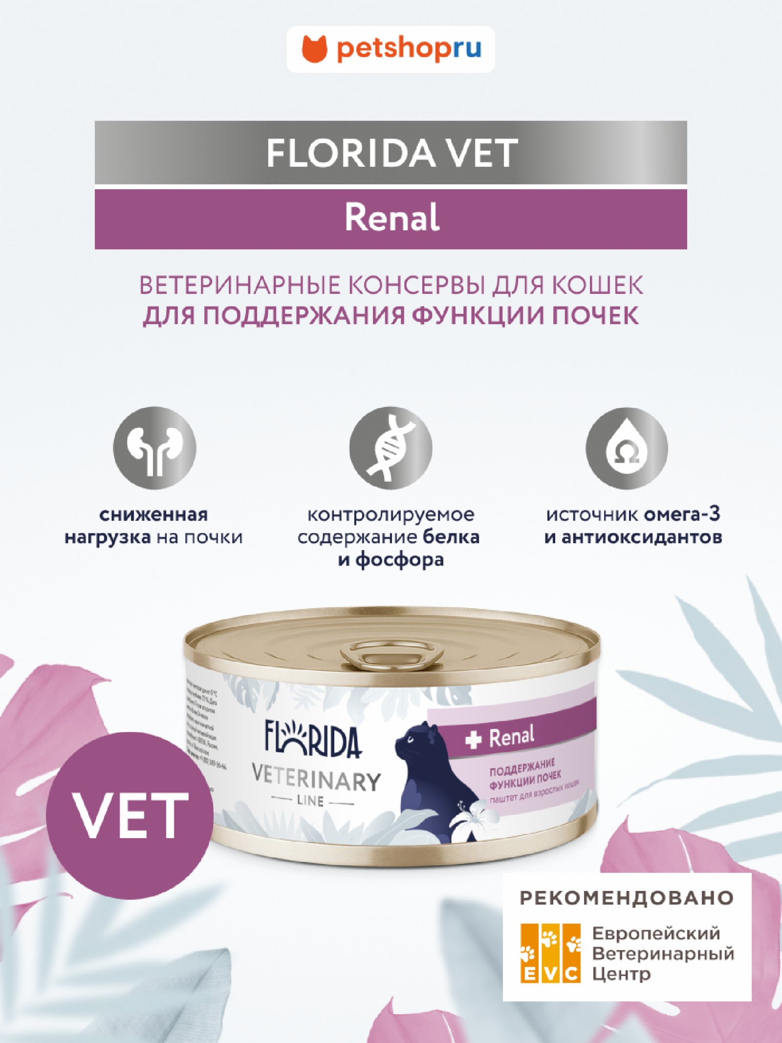 ΡΠΎΡΡΠΎΡΠ½ΠΈΠΉ;- Π»Π΅Π³ΠΊΠΎΡΡΠ²ΠΎΡΠ΅ΠΌΡΠ΅ ΠΈΠ½Π³ΡΠ΅Π΄ΠΈΠ΅Π½ΡΡ ΠΈ ΡΡΠ½ΠΊΡΠΈΠΎΠ½Π°Π»ΡΠ½ΡΠ΅ Π΄ΠΎΠ±Π°Π²ΠΊΠΈ;- ΠΊΠΎΠ½ΡΡΠΎΠ»Ρ ΠΊΠ°ΡΠ΅ΡΡΠ²Π° ΠΈ ΠΏΠΎΠ΄ΡΠ²Π΅ΡΠΆΠ΄ΡΠ½Π½Π°Ρ ΡΡΡΠ΅ΠΊΡΠΈΠ²Π½ΠΎΡΡΡ;- ΠΎΠΏΡΠΈΠΌΠ°Π»ΡΠ½ΡΠ΅ ΡΠ΅ΡΠ΅ΠΏΡΡΡΡ Π΄Π»Ρ ΠΏΠΎΠ΄Π΄Π΅ΡΠΆΠΊΠΈ ΠΏΠΈΡΠ΅Π²Π°ΡΠ΅Π½ΠΈΡ, ΠΏΠ΅ΡΠ΅Π½ΠΈ, ΠΏΠΎΡΠ΅ΠΊ, ΠΊΠΎΠΆΠΈ, Π²Π΅ΡΠ° ΠΈ ΠΎΠ±ΡΠ΅Π³ΠΎ ΡΠΎΠ½ΡΡΠ° ΠΏΠΈΡΠΎΠΌΡΠ΅Π².ΠΠΈΠ΅ΡΡ Florida Veterinary Line Renal - Π΄ΠΈΠ΅ΡΠΈΡΠ΅ΡΠΊΠΈΠΉ Π²Π»Π°ΠΆΠ½ΡΠΉ ΠΊΠΎΡΠΌ Π΄Π»Ρ ΠΊΠΎΡΠ΅ΠΊ, ΠΏΠΎΠ΄Π΄Π΅ΡΠΆΠΈΠ²Π°ΡΡΠΈΠΉ ΡΡΠ½ΠΊΡΠΈΡ ΠΏΠΎΡΠ΅ΠΊ ΠΈ ΠΎΠ³ΡΠ°Π½ΠΈΡΠΈΠ²Π°ΡΡΠΈΠΉ ΠΏΠΎΡΡΡΠΏΠ»Π΅Π½ΠΈΠ΅ Π±Π΅Π»ΠΊΠ° ΠΈ ΡΠΎΡΡΠΎΡΠ°.Π‘ΠΏΠΎΡΠΎΠ±ΡΡΠ²ΡΠ΅Ρ ΡΠ½ΠΈΠΆΠ΅Π½ΠΈΡ Π½Π°Π³ΡΡΠ·ΠΊΠΈ Π½Π° Π²ΡΠ΄Π΅Π»ΠΈΡΠ΅Π»ΡΠ½ΡΡ ΡΠΈΡΡΠ΅ΠΌΡ.ΠΠ°ΠΊ ΡΡΠΎ ΠΏΠΎΠΌΠΎΠ³Π°Π΅Ρ?