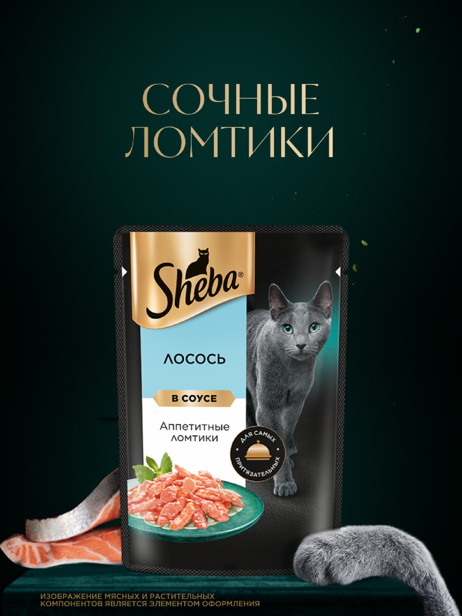 На данной странице размещены фото, описание и состав, а также отзывы о "Консервы, паучи Sheba Влажный корм для кошек с лососем. «Ломтики в соусе. Лосось» (75 г)".