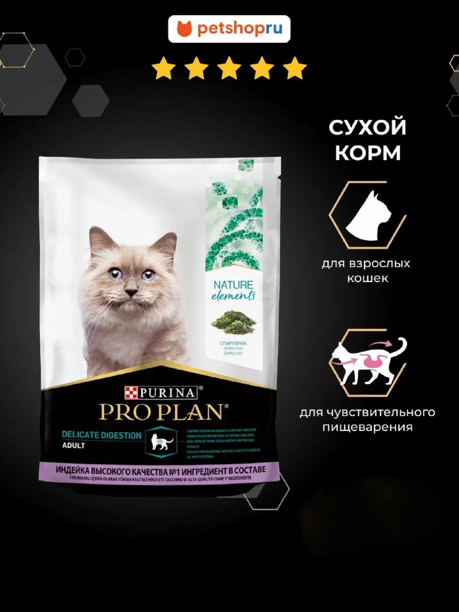 На данной странице размещены фото, описание и состав, а также отзывы о "Сухие корма PRO PLAN® Сухой корм для кошек с чувствительным пищеварением или особыми предпочтениями в еде, с индейкой, Nature Elements (1.4 кг)".