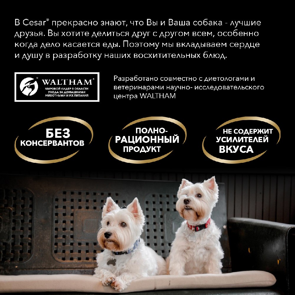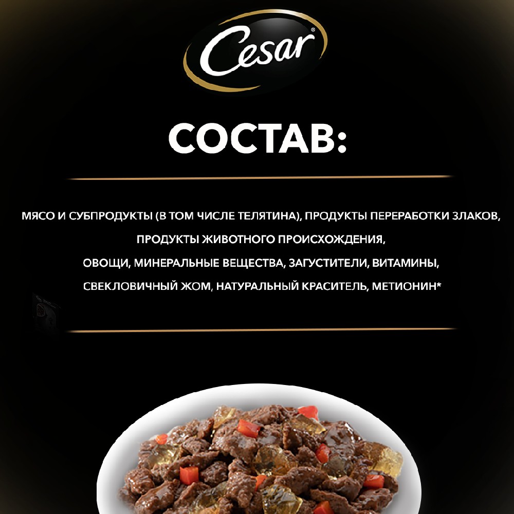ΠΠ° Π΄Π°Π½Π½ΠΎΠΉ ΡΡΡΠ°Π½ΠΈΡΠ΅ ΡΠ°Π·ΠΌΠ΅ΡΠ΅Π½Ρ ΡΠΎΡΠΎ, ΠΎΠΏΠΈΡΠ°Π½ΠΈΠ΅ ΠΈ ΡΠΎΡΡΠ°Π², Π° ΡΠ°ΠΊΠΆΠ΅ ΠΎΡΠ·ΡΠ²Ρ ΠΎ "Cesar ΠΠ»Π°ΠΆΠ½ΡΠΉ ΠΊΠΎΡΠΌ (ΠΏΠ°ΡΡ) Π΄Π»Ρ ΡΠΎΠ±Π°ΠΊ, ΡΠ΅Π»ΡΡΠΈΠ½Π° Ρ ΠΎΠ²ΠΎΡΠ°ΠΌΠΈ, 85 Π³Ρ.".