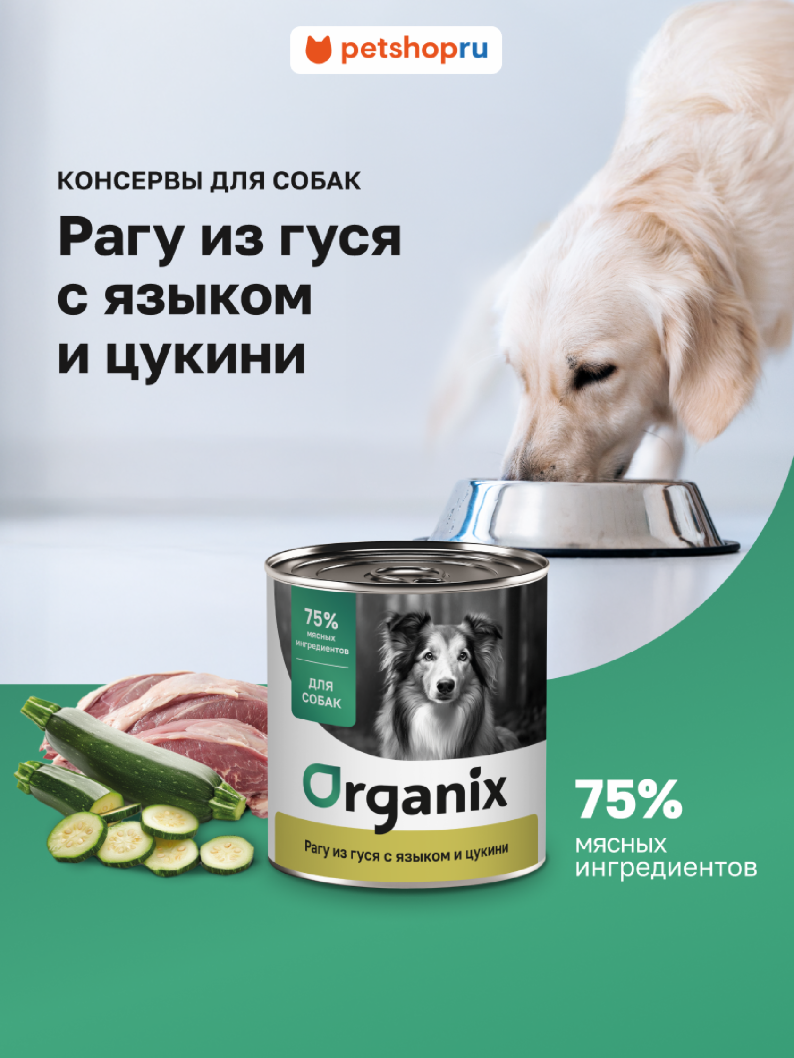 Π₯олистики Organix консСрвы ΠšΠΎΠ½ΡΠ΅Ρ€Π²Ρ‹ для собак Π Π°Π³Ρƒ ΠΈΠ· гуся с языком ΠΈ Ρ†ΡƒΠΊΠΊΠΈΠ½ΠΈ. Π’Π»Π°ΠΆΠ½Ρ‹ΠΉ ΠΊΠΎΡ€ΠΌ (400 Π³)