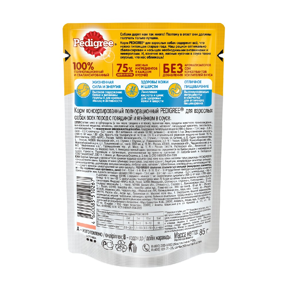 ΠΏΠΎΡΠΎΠ΄, Ρ Π³ΠΎΠ²ΡΠ΄ΠΈΠ½ΠΎΠΉ ΠΈ ΡΠ³Π½Π΅Π½ΠΊΠΎΠΌ Π² ΡΠΎΡΡΠ΅, 85 Π³Ρ. 4660085510267" ΠΏΡΠΎΠΈΠ·Π²ΠΎΠ΄ΠΈΡΠ΅Π»Ρ "Pedigree", ΠΏΠΎ ΡΠ΅Π½Π΅ 32 β½ Π² Π·ΠΎΠΎΠΌΠ°Π³Π°Π·ΠΈΠ½Π΅ "Fraulen" Π² ΠΌΠ°Π³Π°Π·ΠΈΠ½Π΅ ΠΈΠ»ΠΈ Ρ Π΄ΠΎΡΡΠ°Π²ΠΊΠΎΠΉ Π½Π° Π΄ΠΎΠΌ Π² Π³ΠΎΡΠΎΠ΄Π΅ ΠΠΎΡΠΊΠ²Π°.