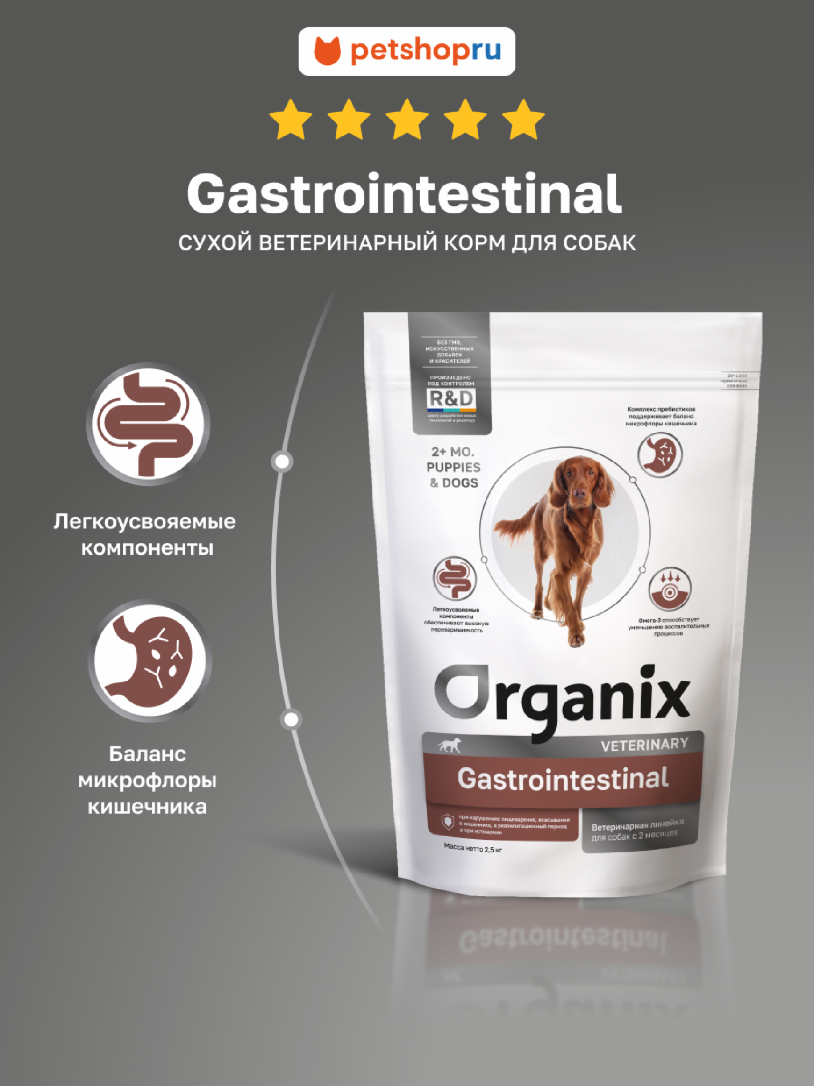 ΠΎΠΉ ΠΊΠΎΡΠΌ Organix Veterinary Gastrointestinal - ΡΡΠΎ Π΄ΠΈΠ΅ΡΠΈΡΠ΅ΡΠΊΠΎΠ΅ ΠΏΠΈΡΠ°Π½ΠΈΠ΅ Ρ Π»Π΅Π³ΠΊΠΎΡΡΠ²ΠΎΡΠ΅ΠΌΡΠΌΠΈ ΠΈΠ½Π³ΡΠ΅Π΄ΠΈΠ΅Π½ΡΠ°ΠΌΠΈ. ΠΠ½ΠΎ ΠΏΠΎΠΌΠΎΠ³Π°Π΅Ρ ΠΏΡΠΈ:Β