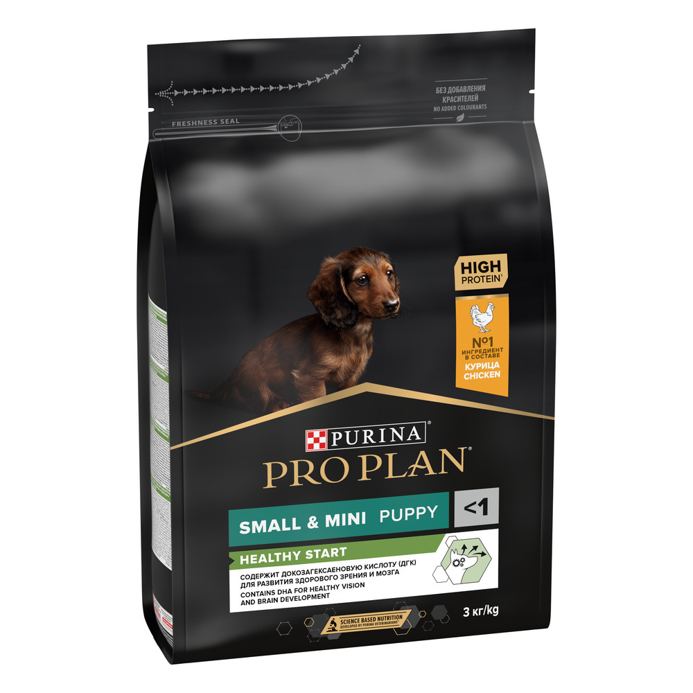 На данной странице размещены фото, описание и состав, а также отзывы о "ProPlan Healthy Start Сухой корм для щенков мелких и карликовых пород, с курицей, 3 кг".