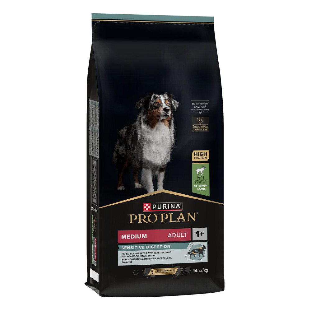 На данной странице размещены фото, описание и состав, а также отзывы о "ProPlan Sensitive Digestion Сухой корм для взрослых собак средних пород с чувствительным пищеварением, с высоким содержанием ягненка, 14 кг".
