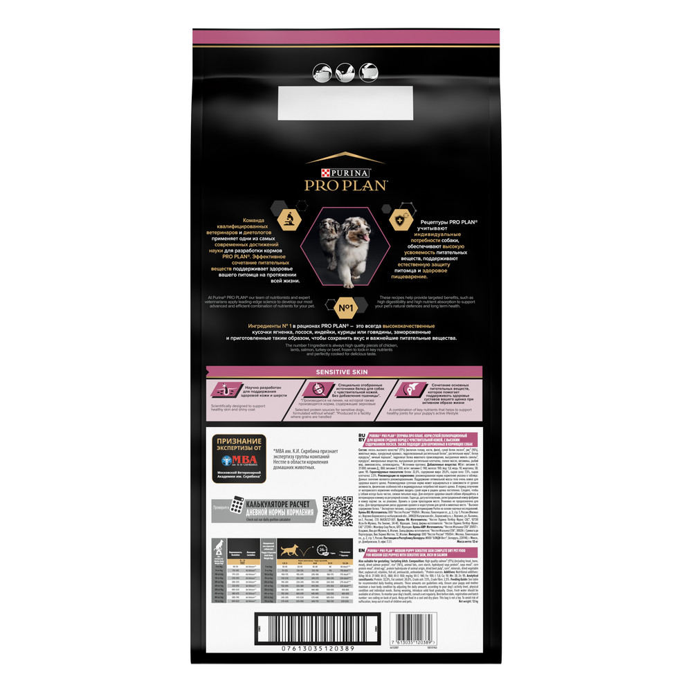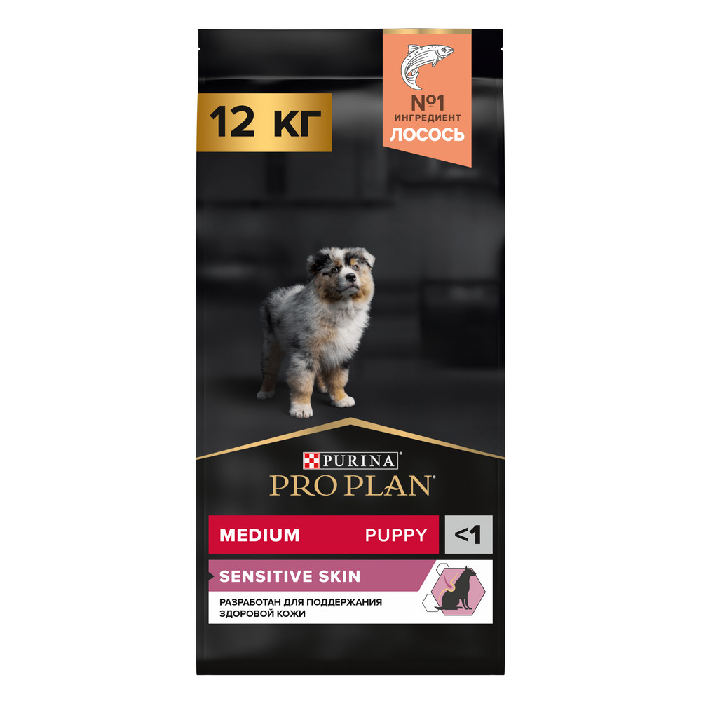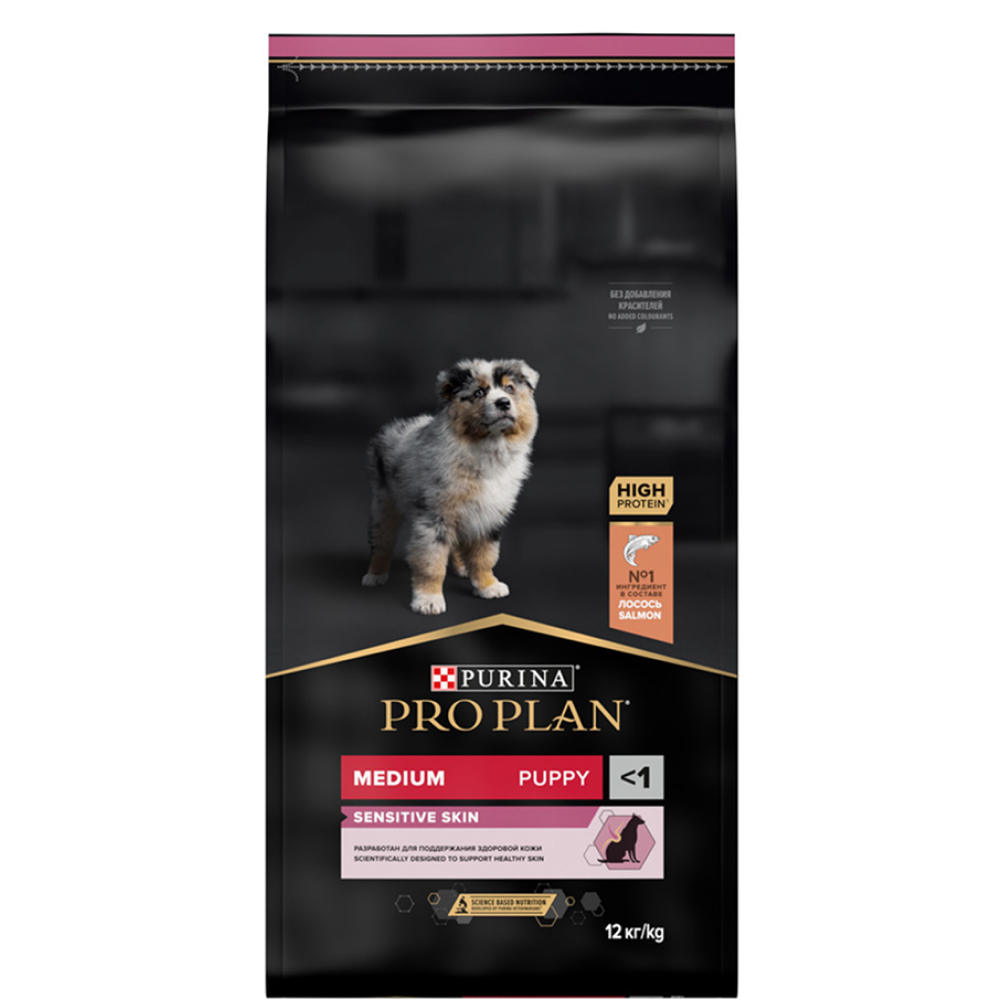 На данной странице размещены фото, описание и состав, а также отзывы о "ProPlan Sensitive Skin Сухой корм для щенков средних пород с чувствительной кожей, с высоким содержанием лосося, 12 кг".