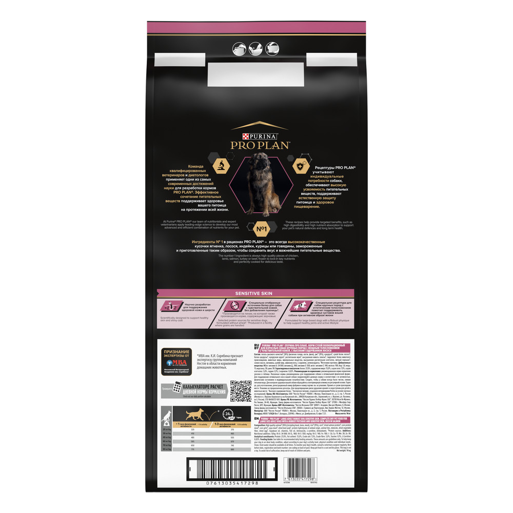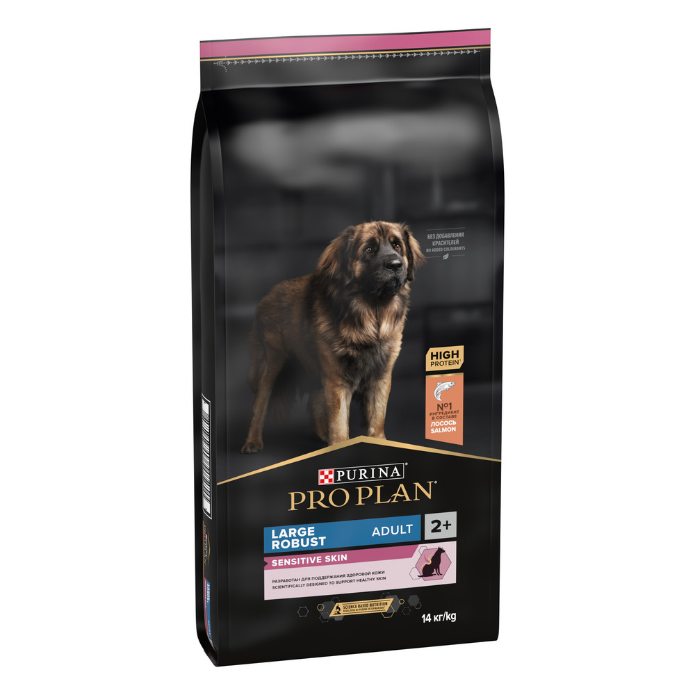 На данной странице размещены фото, описание и состав, а также отзывы о "ProPlan Сухой корм для взрослых собак крупных пород с мощным телосложением с чувствительной кожей, с высоким содержанием лосося, 14 кг".